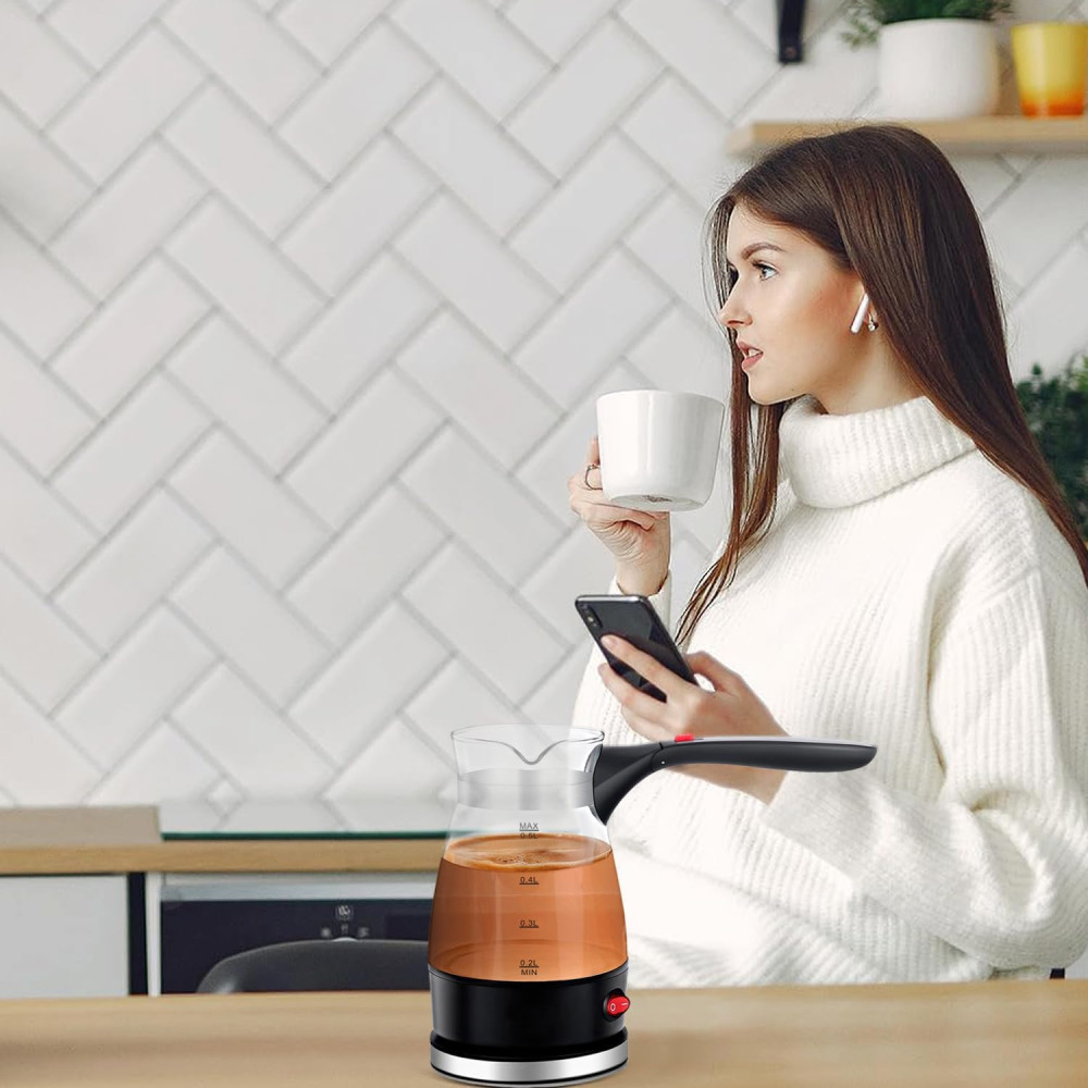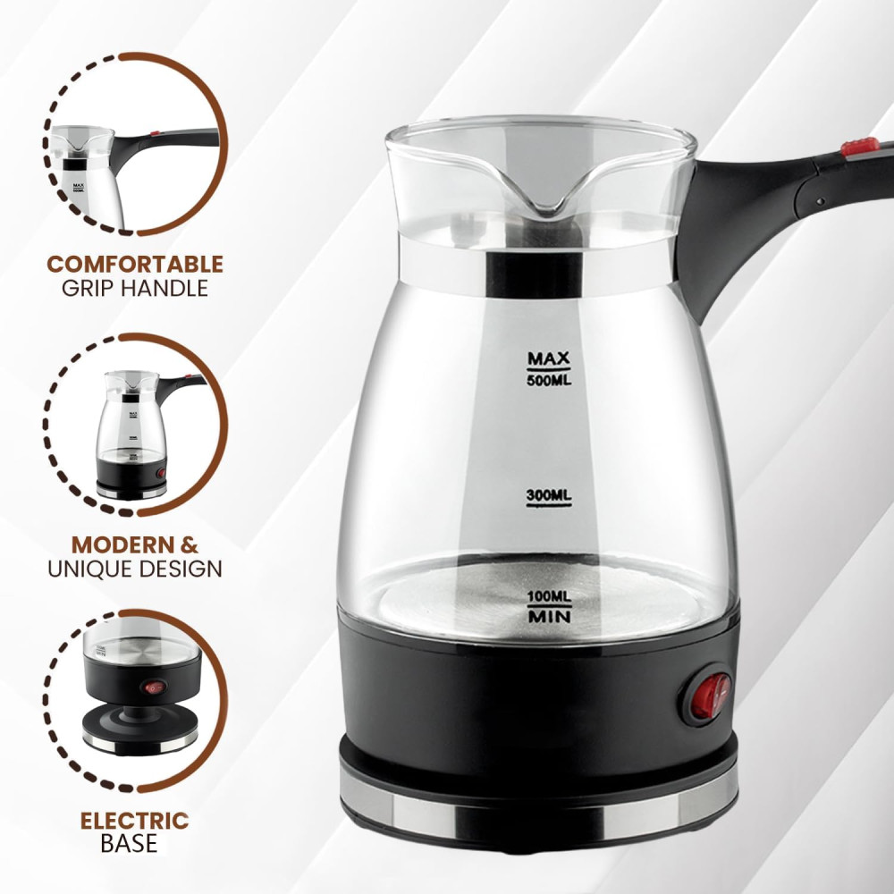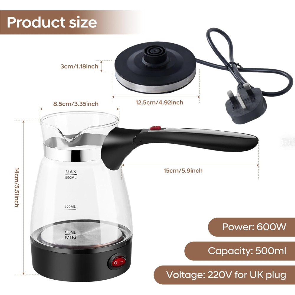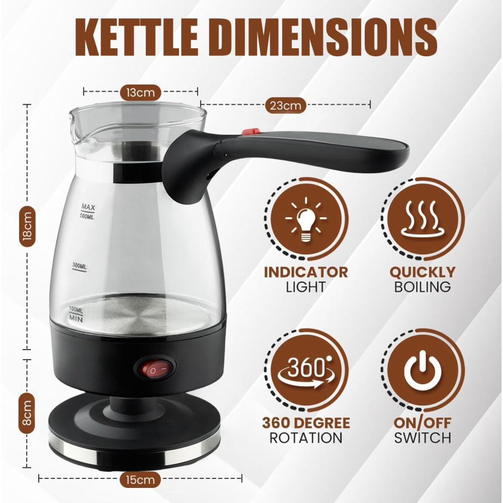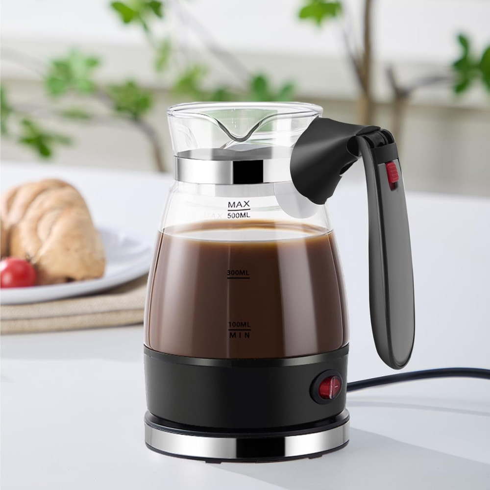 Мощность 600 Вт позволяет быстро нагреть воду, а эргономичная ручка и удобный носик делают разлив напитка легким и безопасным. Вращающееся на 360° основание упрощает эксплуатацию, а система двойной защиты от перегрева гарантирует безопасность. Объем резервуара 500 мл