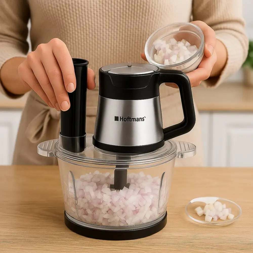 Hoffmans HM-8857 — это мощный и универсальный кухонный измельчитель, который станет незаменимым помощником для любой кухни. Он позволяет быстро измельчать, смешивать, взбивать, натирать и готовить соусы, смузи, пюре, супы-пюре и другие блюда.