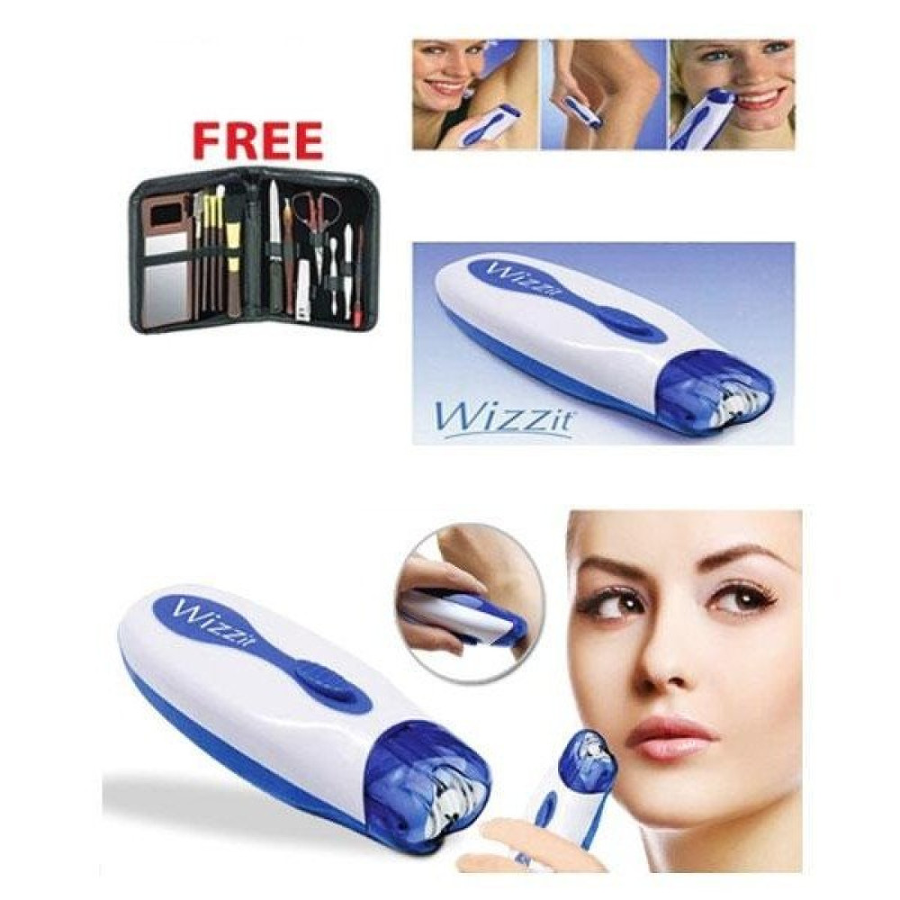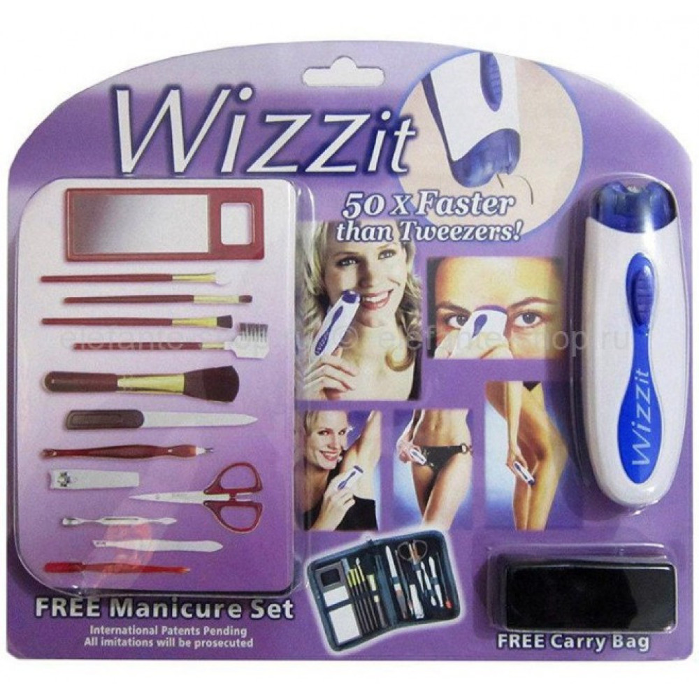 При помощи домашнего помощника Wizzit (Визит) можно удалить волосы не только на ногах и руках, но и в области лица, подмышек, откорректировать форму бровей, и что немаловажно – избавиться от нежелательных волосков в зоне бикини! Плюс ко всему этому – в комплекте набор для маникюра и дорожный чехол для этих аксессуаров!