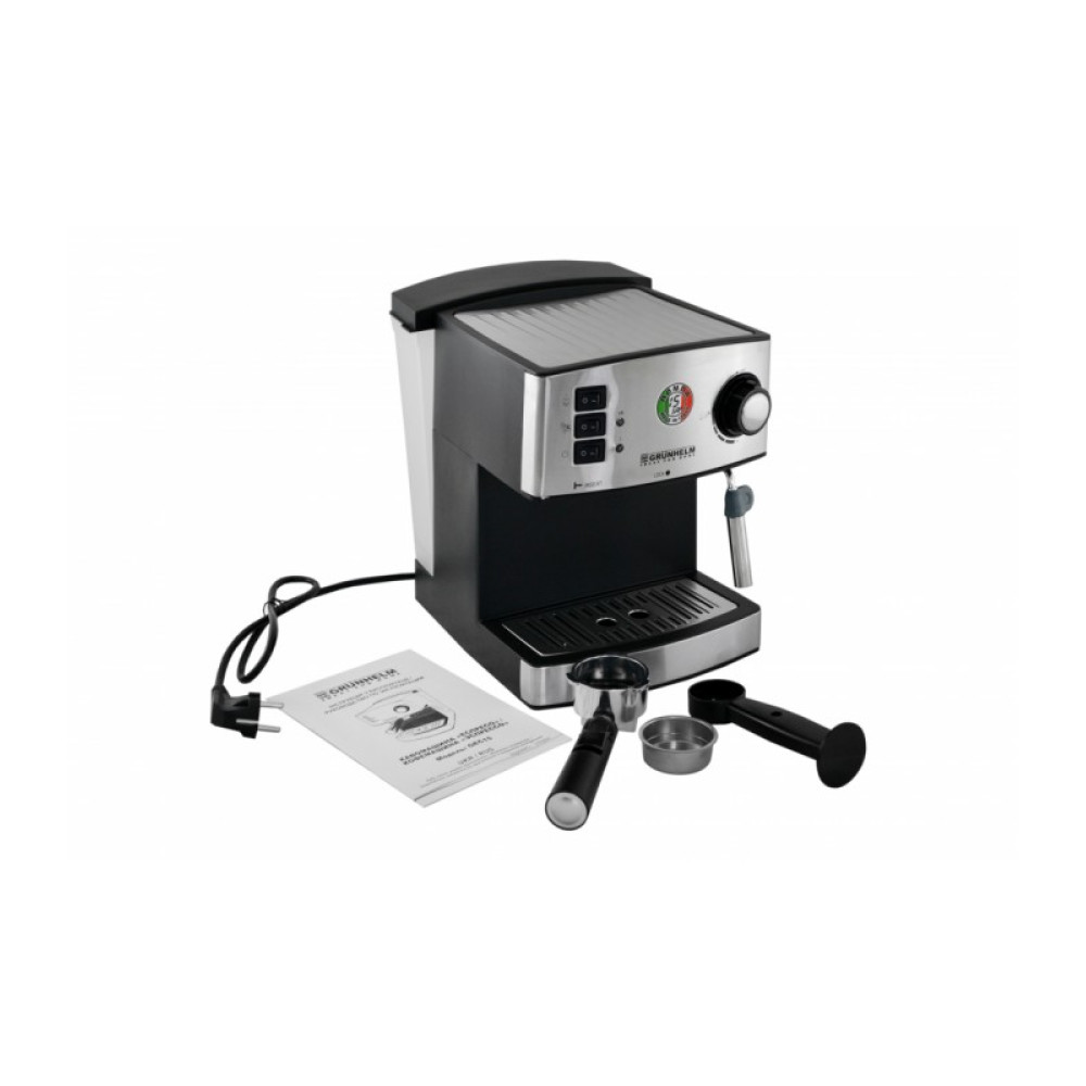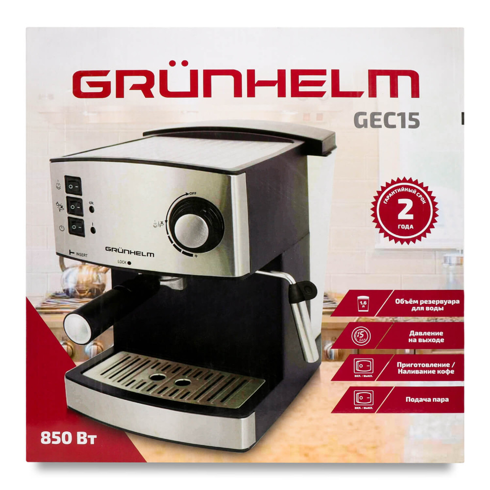 Эспрессо кофемашина Grunhelm GEC15 с интегрированным капучинатором позволит приготовить вкуснейший кофе, не выходя из дома! Латте, капучино или экспессо – выбирайте Ваш любимый напиток и наслаждайтесь