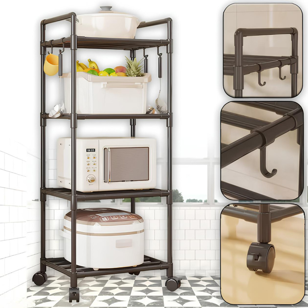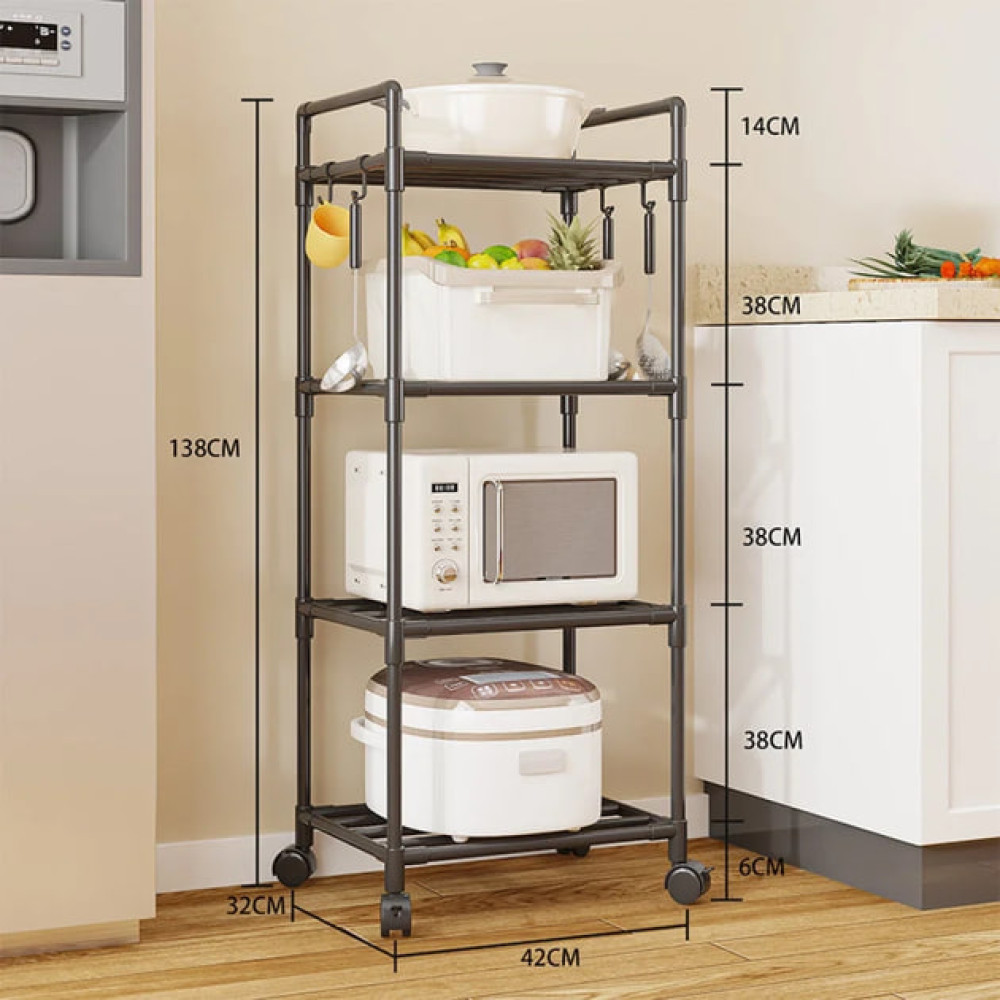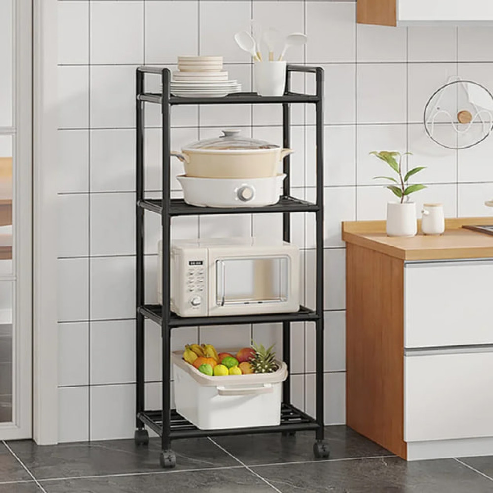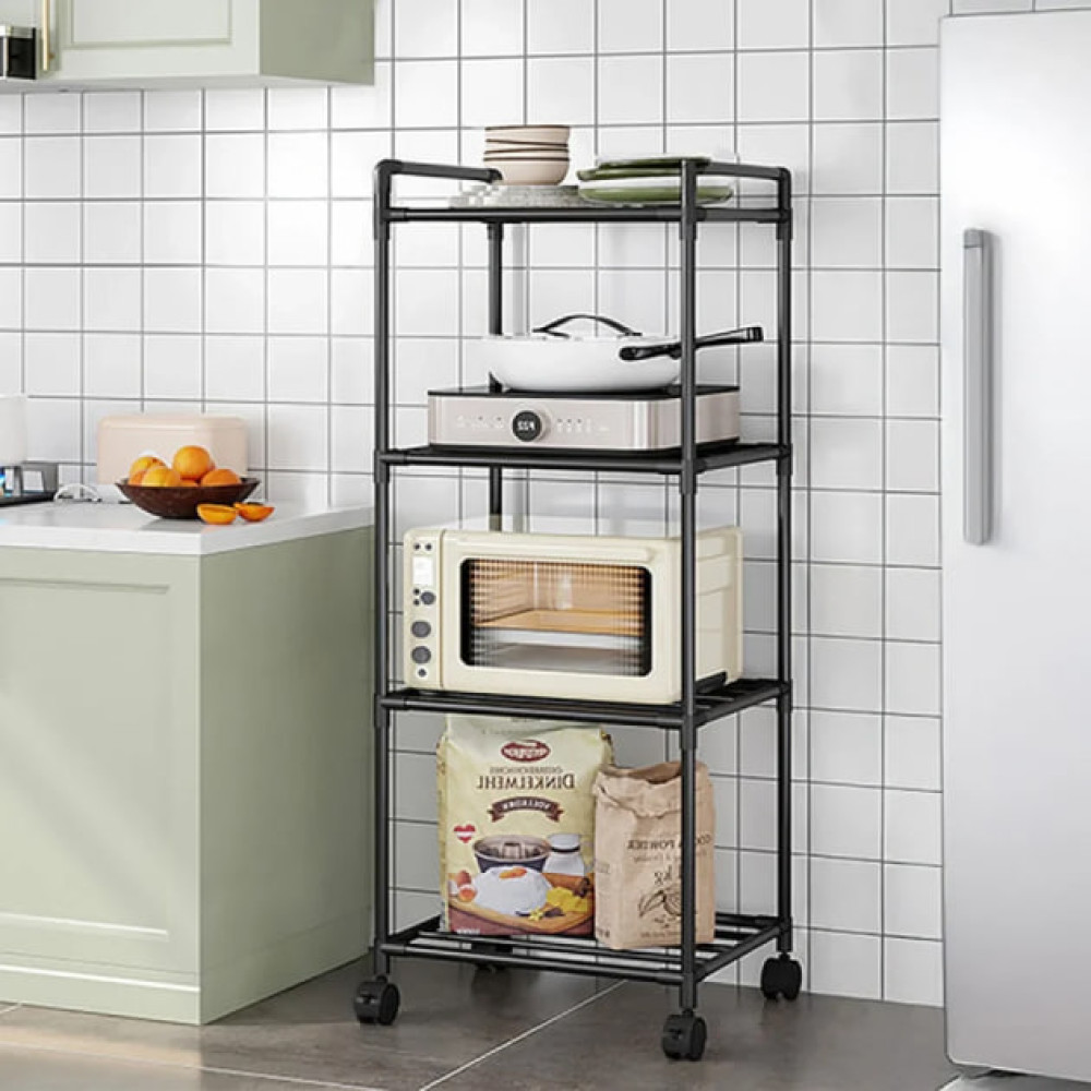 Этажерка кухонная напольная 4 яруса на колесиках• Удобный и практичный кухонный стеллаж с 4 уровнями хранения