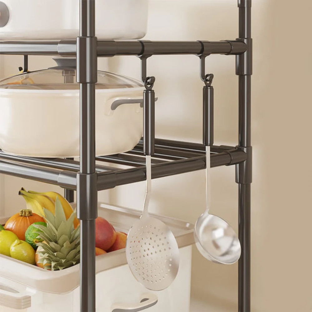 Удобный и практичный кухонный стеллаж с 4 уровнями хранения поможет рационально организовать пространство и держать все необходимые предметы под рукой. Конструкция устойчива, занимает минимум места и идеально подходит для хранения посуды, продуктов, бытовой техники или аксессуаров.