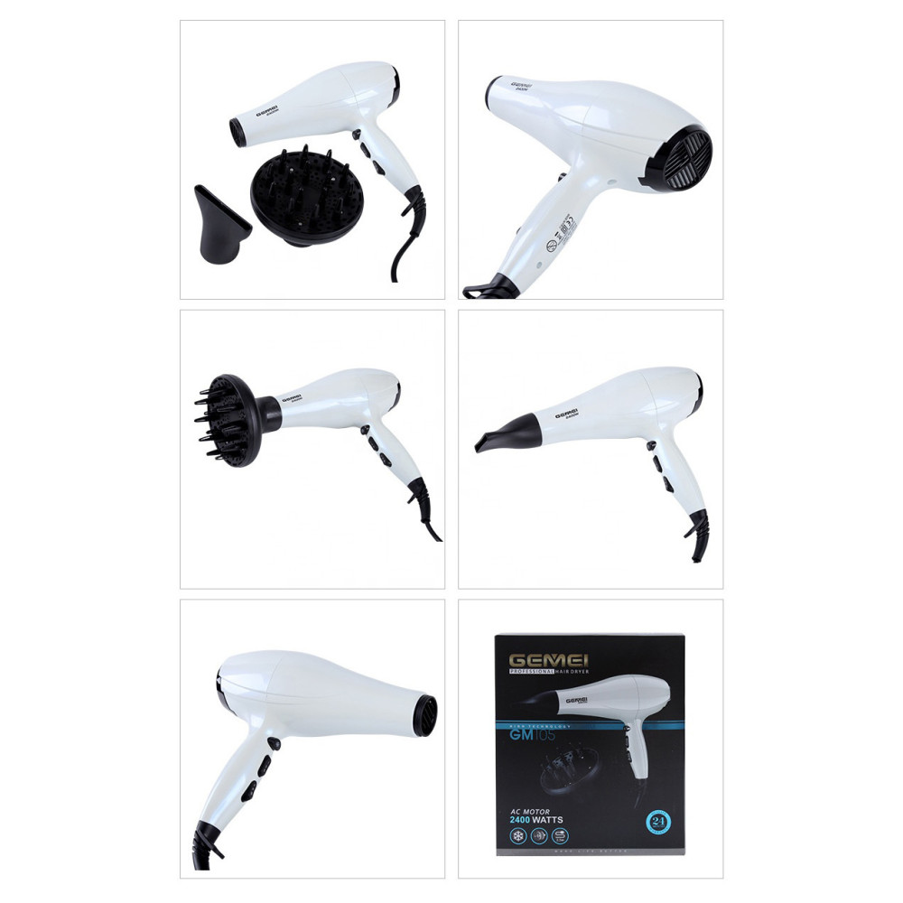 Функциональный и удобный Фен для укладки волос Gemei GM-105 отличается красивым дизайном и доступной ценой с большим набором функций. Отличается высоким качеством и надежностью, бережно сушит волосы. Это мощный и универсальный инструмент, с помощью которого можно не только высушить, но и аккуратно уложить ваши волосы.
