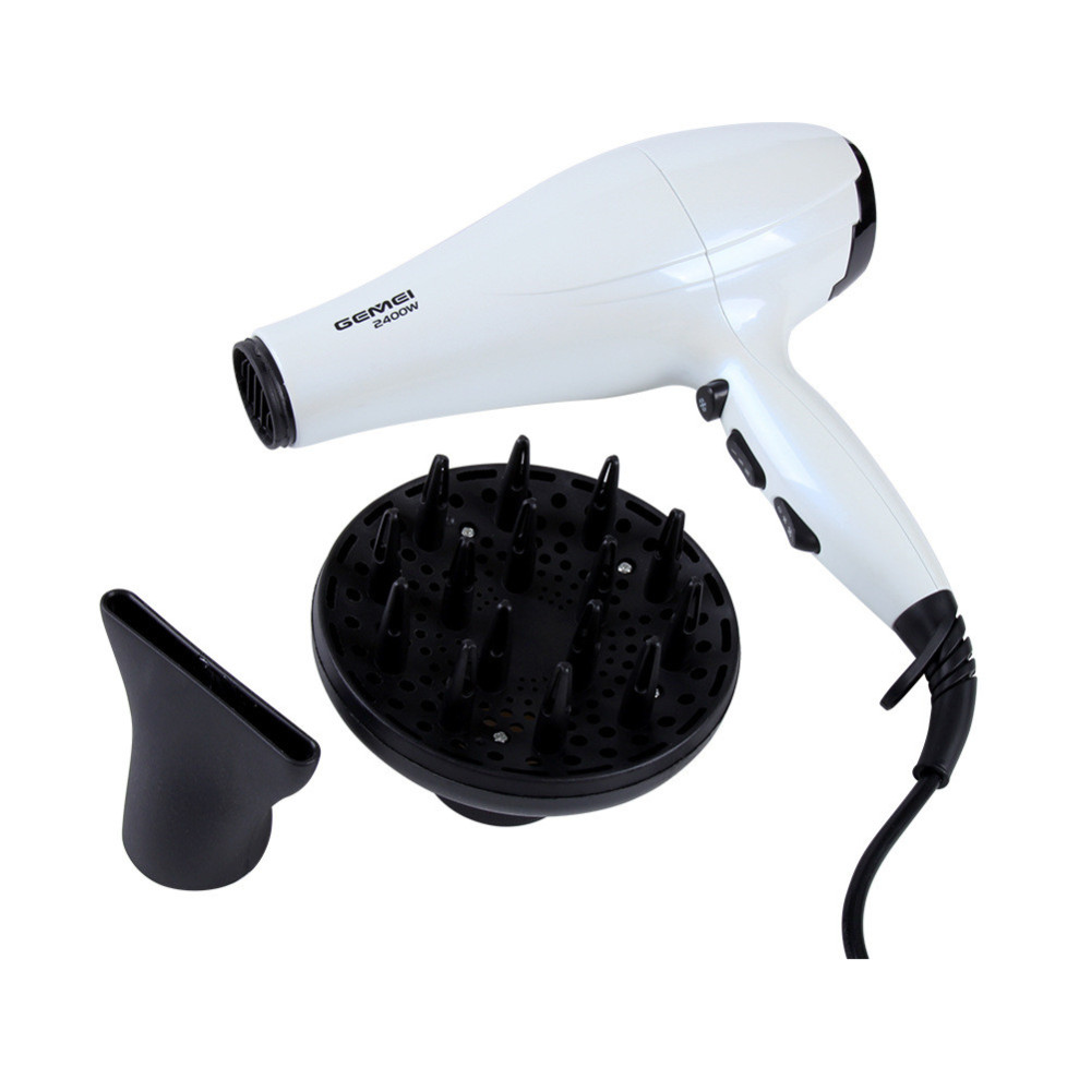 Профессиональный мощный фен для укладки волос Gemei GM-105 2400W - это универсальный, удобный в использовании фен, который поможет Вам быстро высушить волосы. Профессиональный фен для волос отличается от остальных тем, что данный фен имеет АС мотор. Именно благодаря AC мотору фены способны работать дольше без перегрева, их мощности несколько выше классических бытовых вариантов, а продолжительность «жизни» также превосходит домашние модели. Изделие имеет хорошую мощность, благодаря чему качественно выполнит свою задачу. Небольшие, компактные размеры позволят транспортировать фен с диффузором без проблем.