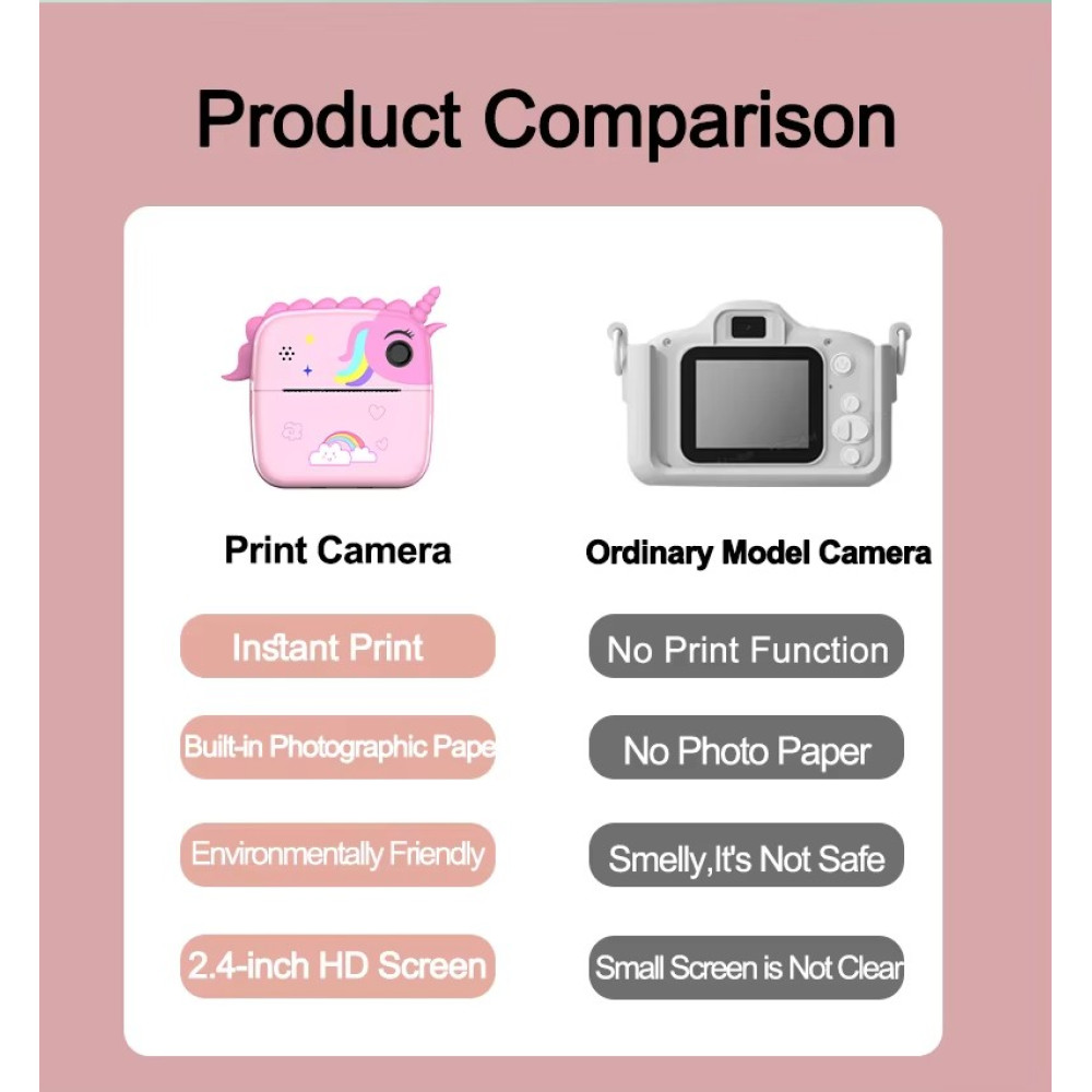 Детский фотоаппарат с мгновенной печатью Единорог / Дракон · Детская камера с встроенным термопринтером и возможностью записи видео