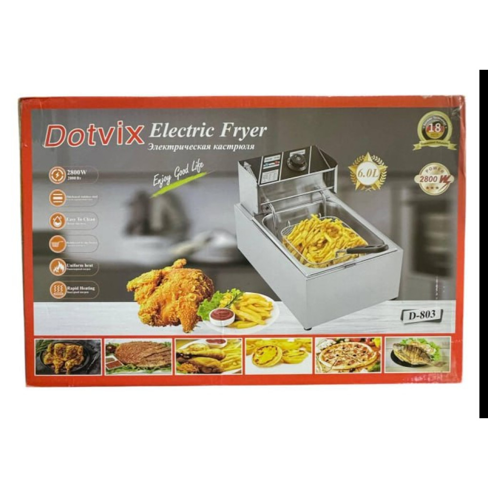 Фритюрница Dotvix Electric Fryer D-803 — это современный и надежный кухонный прибор, который позволяет быстро и равномерно готовить хрустящие блюда. Она отлично подходит для приготовления картофеля фри, куриных крылышек, рыбы, овощей и других продуктов, обеспечивая аппетитную золотистую корочку даже в домашних условиях. Простота использования и профессиональное качество жарки делают её идеальным решением для повседневного применения.