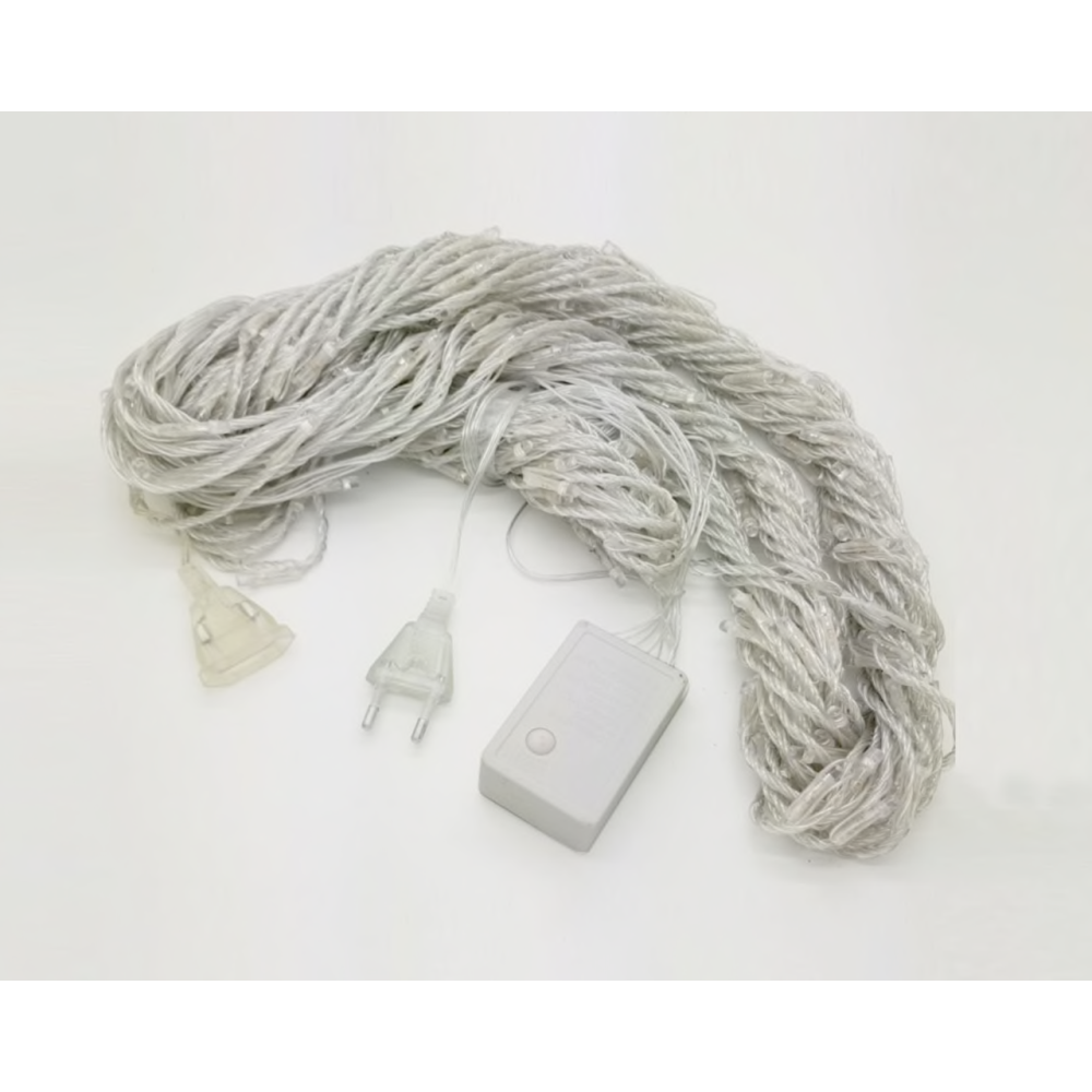 Гирлянда состоит из множества светодиодов разной расцветки. Гирлянда подключена к специальному контролеру с кнопочкой для управления режимами мерцания, начиная от быстрого и заканчивая плавными переходами от одного цвету к другому. Создается сказочное и праздничное настроение у Вас дома.