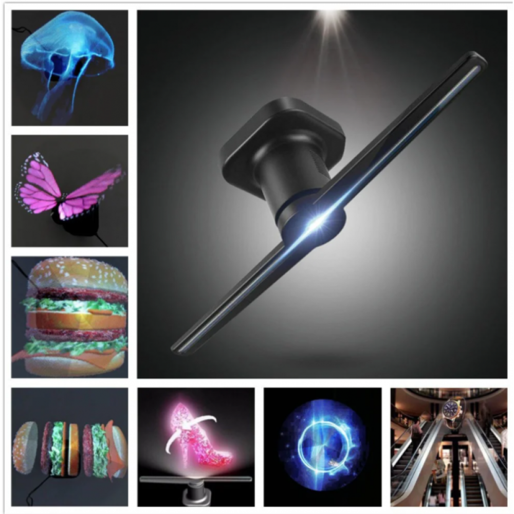 Голографический 3D проектор Wi-Fi SACA с вентилятором ∙ 3D проекция ∙ 3D графика ∙ Голограмма 42 см с пультом ДУ – это техническая новинка, выступающая в качестве уникального и эффективного рекламного инструмента.