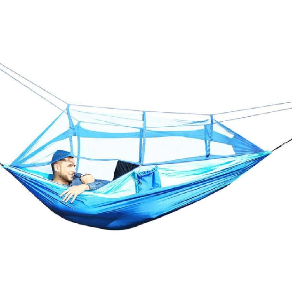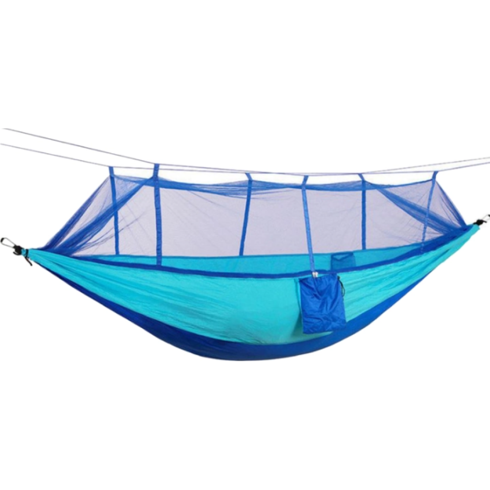 Гамак сделан из прочного и легкого нейлона, обеспечивая долговечность и легкость в транспортировке. Он легко складывается в специальный чехол и может быть стиркой в стиральной машинке для удобства ухода. Вы можете использовать гамак как с москитной сеткой, так и без нее, просто закрепив ее снизу самого гамака в зависимости от ваших потребностей. Кроме того, гамак оснащен удобным кармашком на боку, где вы можете хранить свой телефон, бутылку с водой и другие мелочи.