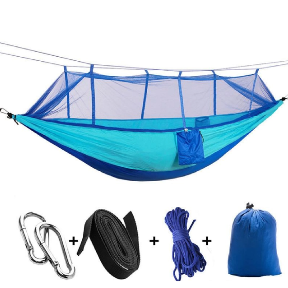 Походный гамак с москитной сеткой Идеальное решение для любителей активного отдыха на природе! Этот гамак с москитной сеткой обеспечит надежную защиту от назойливых насекомых и их укусов, позволяя вам наслаждаться отдыхом без неудобств. Москитная сетка прошита вдоль гамака и закрывается на молнию, обеспечивая полную безопасность и комфорт. Вы также будете защищены от сильных порывов ветра и песчинок благодаря москитной сетке.