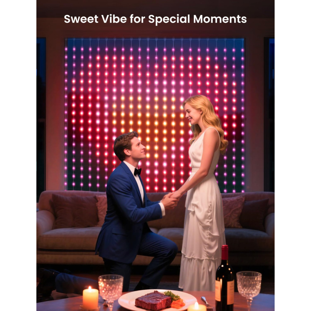 Гирлянда-штора SFK-07 2×2 м с управлением через приложение APP Bluetooth и подключением USB — отличное решение для создания тёплой и праздничной атмосферы в доме. Она идеально подходит для декорирования окон, стен и балконов
