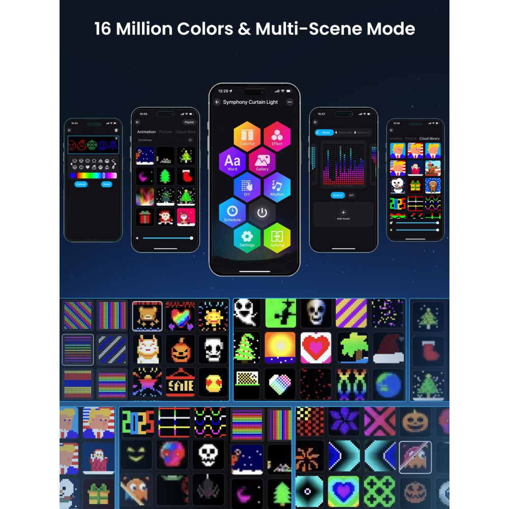 Заказывайте Гирлянда Smart-штора SFK-07 праздничная LED-гирлянда для дома ∙ Светодиодная штора с приложением SFK-07 20 нитей по 20 LED на нашем сайте!