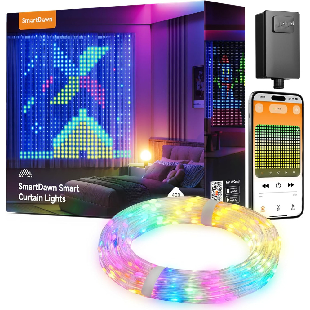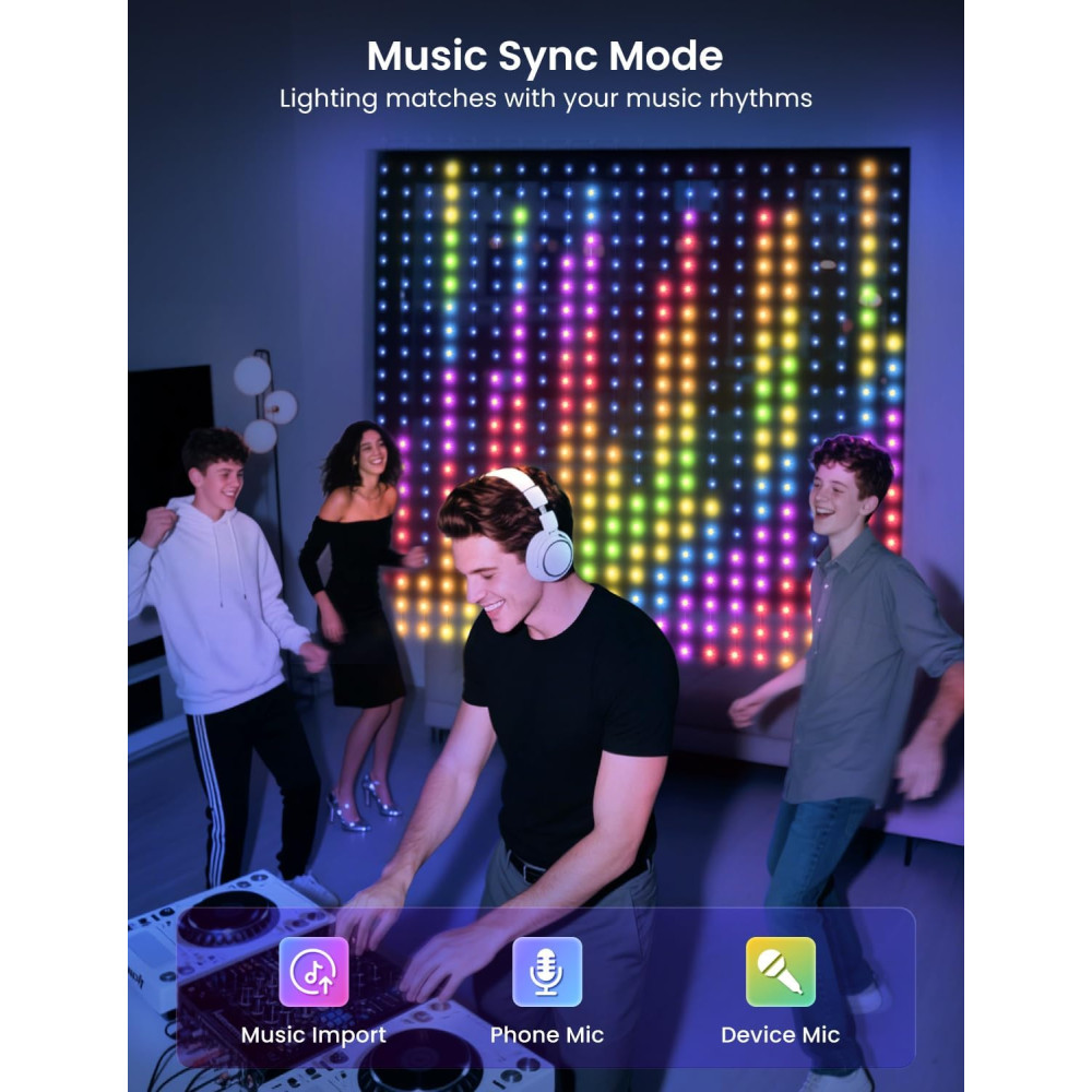 Благодаря 200 ярким LED-лампочкам гирлянда создаёт насыщенное свечение, которое привлекает внимание и добавляет интерьеру очарования. Управление через Bluetooth позволяет изменять режимы и цвета света прямо со смартфона. Для удобства в комплекте предусмотрен пульт управления. Вы можете выбирать разные световые сценарии: мигание, плавное или статическое свечение