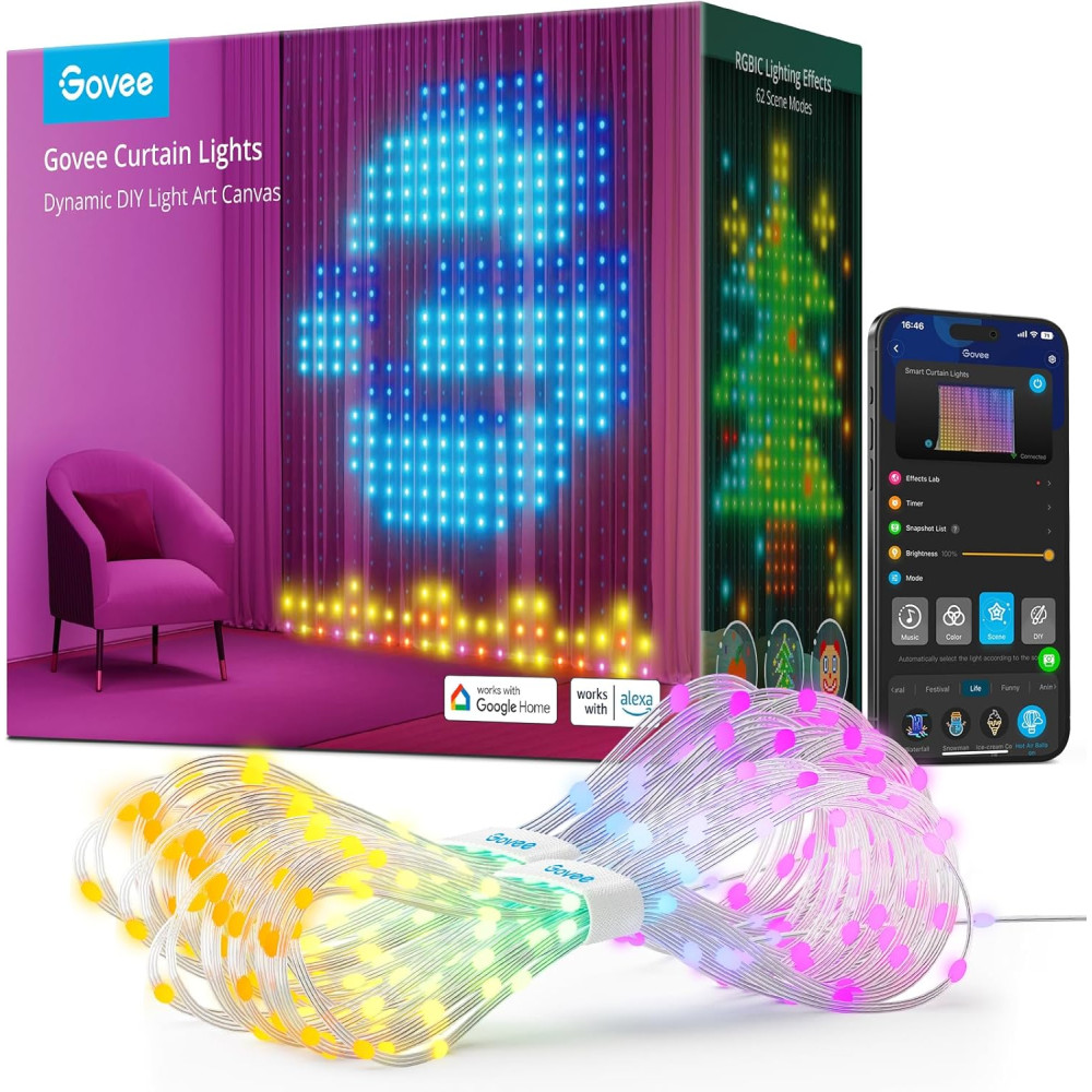 Благодаря 200 ярким LED-лампочкам гирлянда создаёт насыщенное свечение, которое привлекает внимание и добавляет интерьеру очарования. Управление через Bluetooth позволяет изменять режимы и цвета света прямо со смартфона. Для удобства в комплекте предусмотрен пульт управления. Вы можете выбирать разные световые сценарии: мигание, плавное или статическое свечение