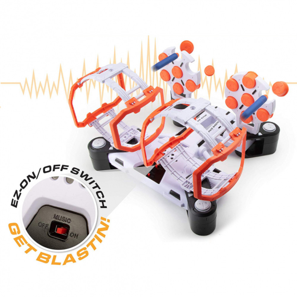 Игровой набор Тир с мишенями Стрельба из бластера по гравитрону Space Wars BLD Toys B3229 ∙ Интерактивная детская игра – стрелялка по целям для мальчиков — это одна большая платформа на которой размещены две вращающихся препятствия. Платформы вращаться на 360°, что усложняет попадания в цель, тем самым больше завлекая детей и розвивая их меткость. В игру можно играть сразу двоим детям.