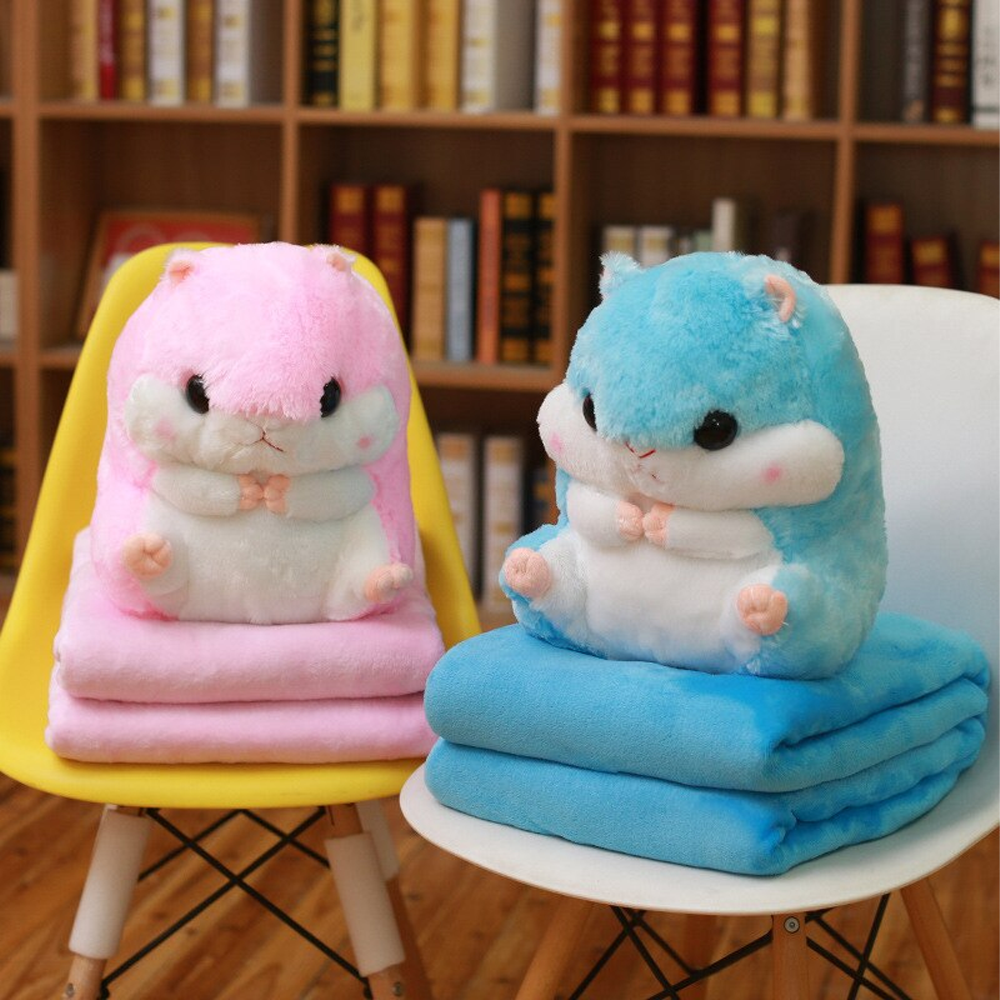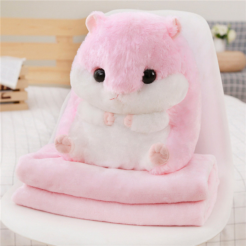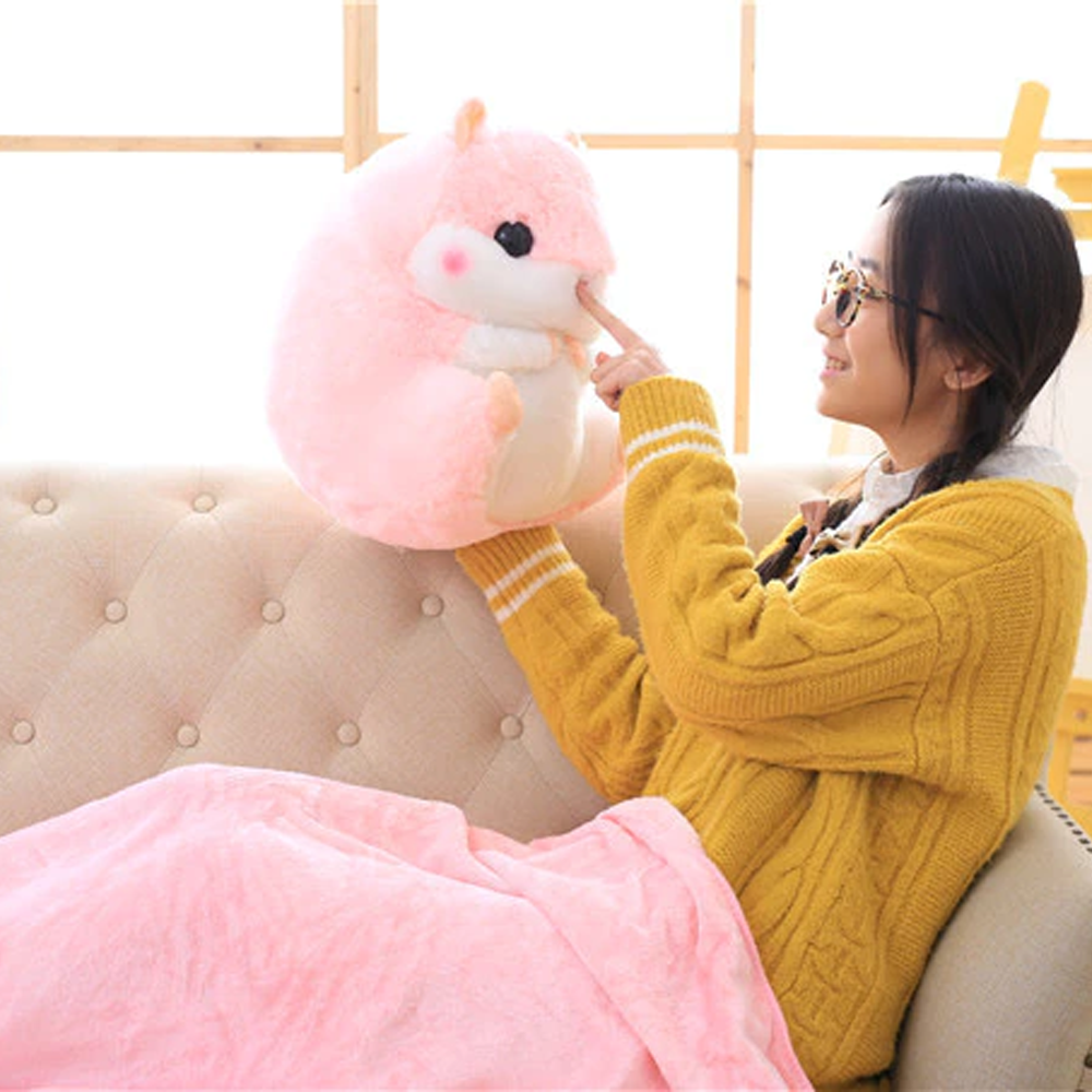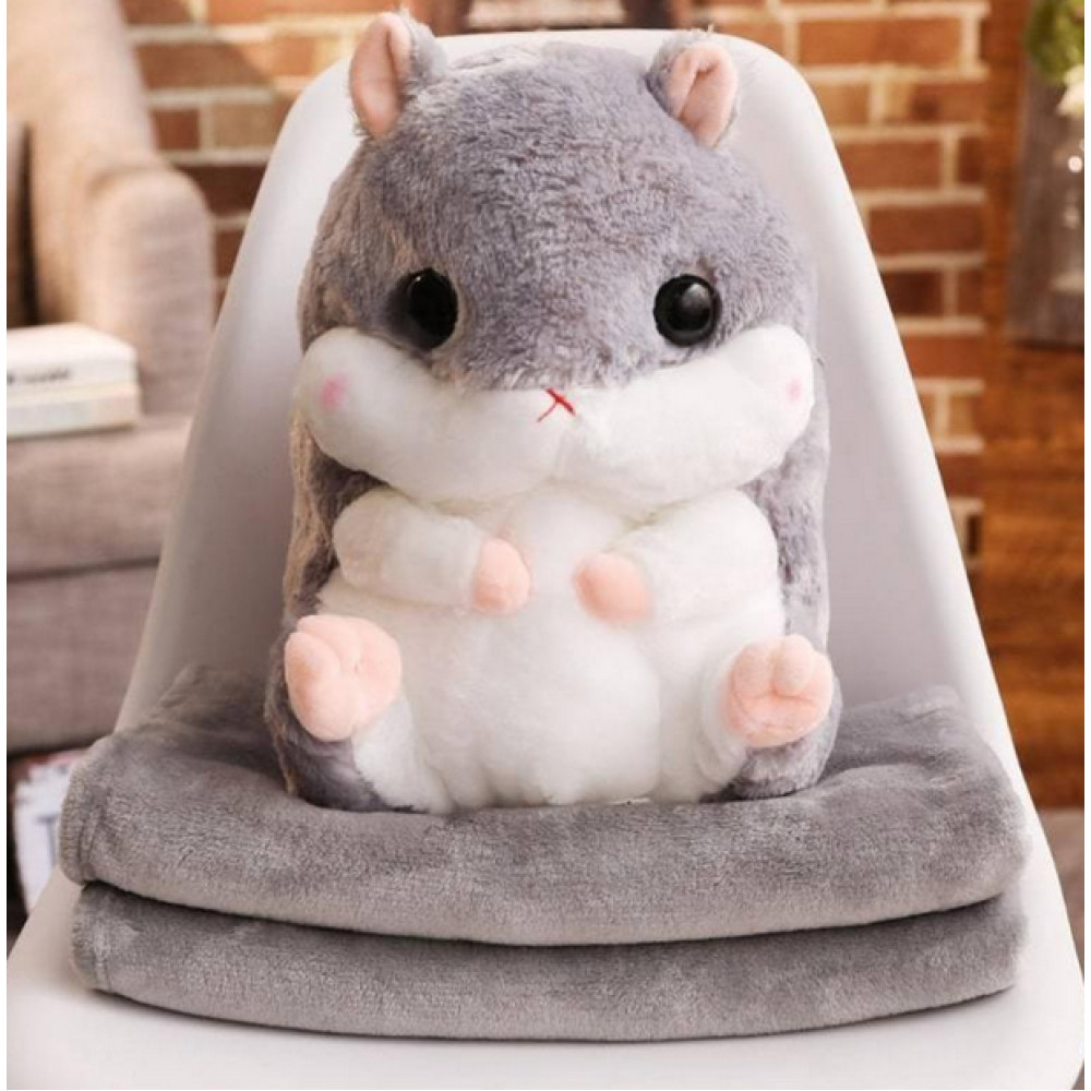 Игрушка-подушка Хомяк с пледом 3 в 1 ∙ Мягкая игрушка + Плед + Подушка Хомячок, 100 x 100 см ∙ Розовый / голубой / коричневый / серый