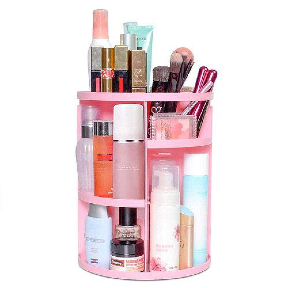 Органайзер для косметики вращающийся BEAUTY BOX для хранения косметики 360 Розовый Rotation Cosmetic Organizer
