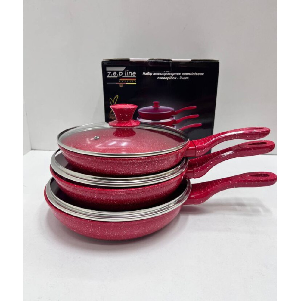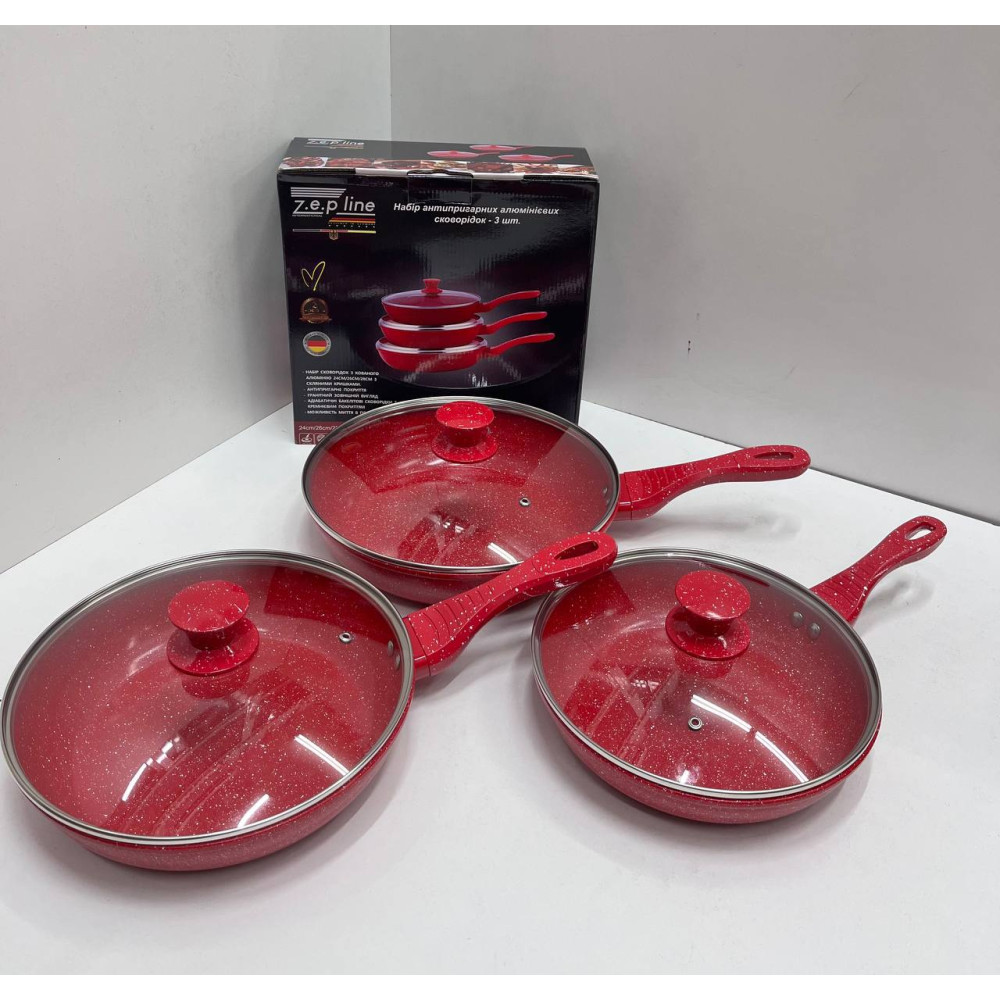 Набор алюминиевых сковородок с антипригарным покрытием и стеклянными крышками Zepline ZP-700 (3 шт)