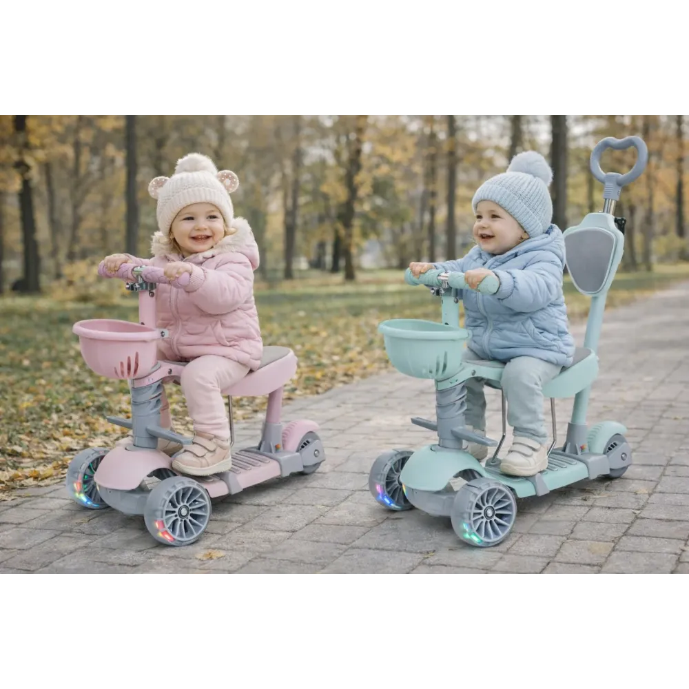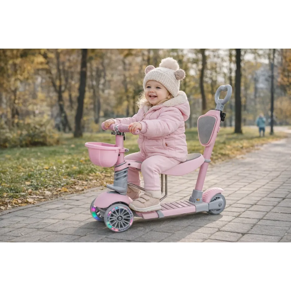 Детский самокат 18-3 с родительской ручкой и сиденьем — это удобный и практичный транспорт для прогулок, который помогает совместить комфорт для ребенка, удобство для родителей и привлекательный внешний вид в одной модели. Такой трехколесный самокат отлично подходит для малышей и детей, которые только начинают осваивать катание, потому что устойчивая конструкция и продуманная форма делают каждую прогулку более спокойной и приятной. Благодаря наличию сиденья и родительской ручки модель можно использовать не только как обычный самокат, но и как удобный вариант для прогулок с контролем со стороны взрослых.