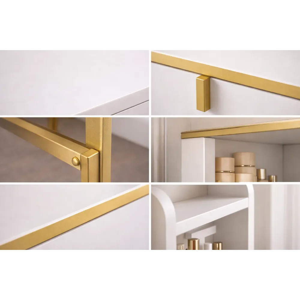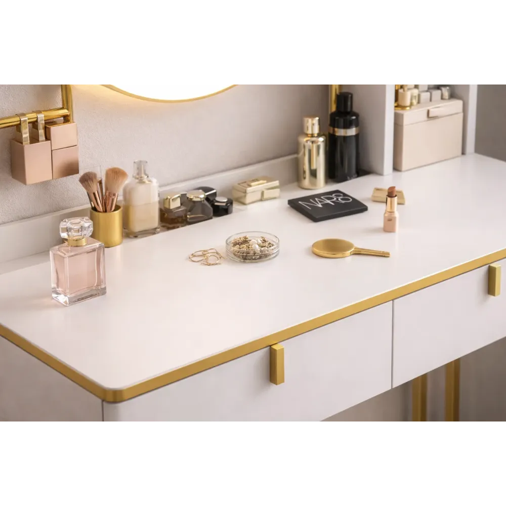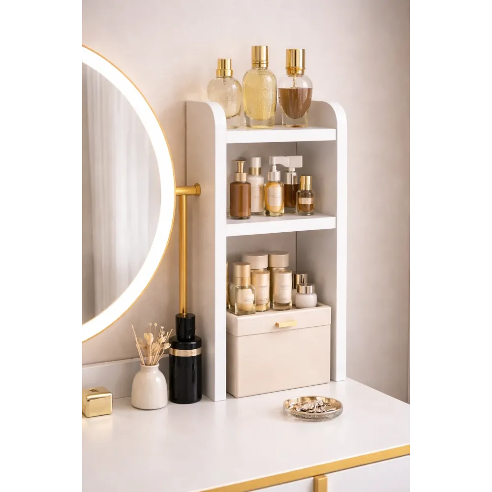 Стол макияжный STL-MD 105 — это стильное и функциональное решение для тех, кто хочет организовать удобное место для ежедневного ухода, нанесения макияжа и хранения косметики в одном пространстве. Белый туалетный столик с круглым LED зеркалом помогает создать аккуратную и эстетичную зону в спальне, гардеробной или другой комнате, где важны комфорт, свет и порядок. Такая модель особенно хорошо подходит для современного интерьера, потому что сочетает практичность, визуальную легкость и актуальный дизайн.