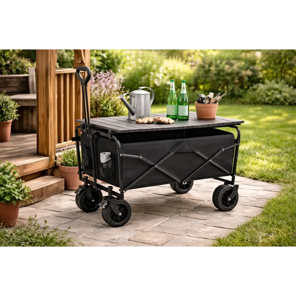 Модель хорошо вписывается в разные сценарии эксплуатации: ее можно использовать как тележку для перевозки необходимых вещей, как мобильную подставку или как удобный столик для отдыха. Складной формат облегчает хранение и транспортировку, что особенно важно при ограниченном пространстве дома, в кладовой, в багажнике автомобиля или на даче. За счет универсальности тележка-стол становится практичным приобретением для тех, кто любит функциональные и полезные товары для дома и отдыха.