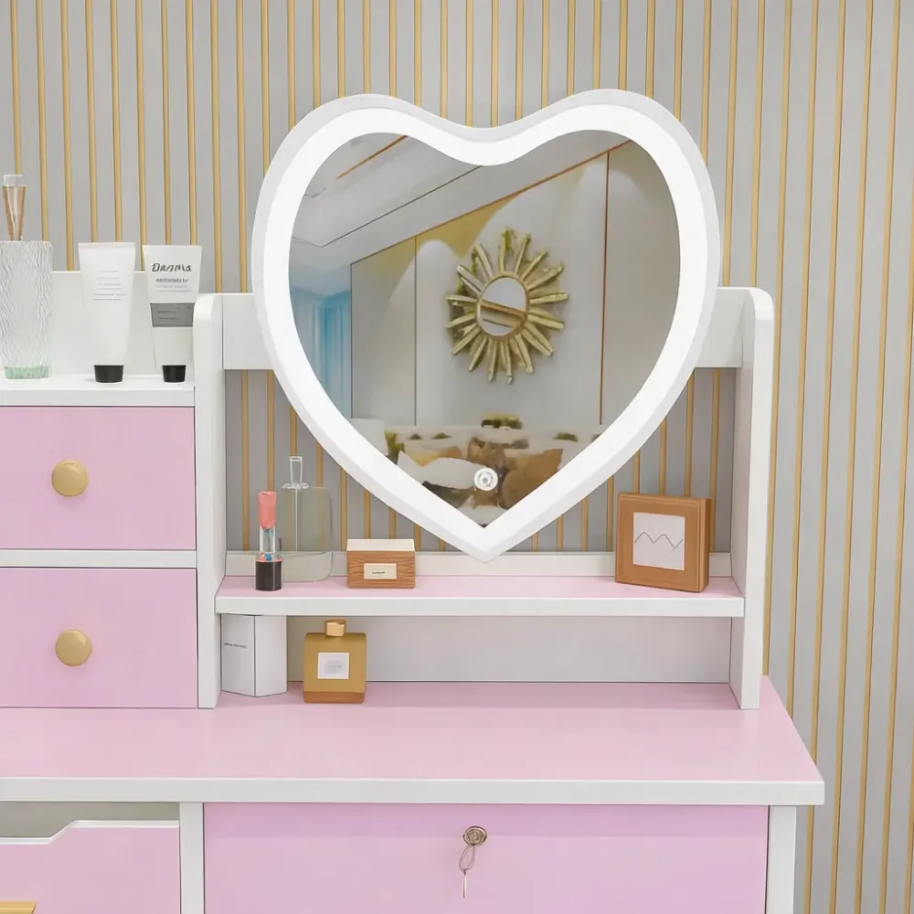 Туалетный столик с зеркалом-сердцем помогает создать дома эстетичное и хорошо организованное пространство для красоты, макияжа и ухода за собой.