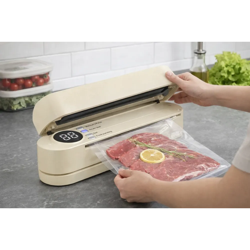 Вакуумный упаковщик Model 8 — это удобное решение для тех, кто хочет дольше сохранять свежесть продуктов, аккуратно организовать хранение на кухне и уменьшить влияние воздуха на качество еды. Такой бытовой вакууматор помогает герметично упаковывать мясо, рыбу, овощи, фрукты, крупы, полуфабрикаты и другие продукты, чтобы они дольше сохраняли вкус, аромат и внешний вид. Для домашнего использования это особенно удобно, когда хочется сократить количество пищевых отходов, упростить хранение и освободить больше места в холодильнике или морозильной камере.