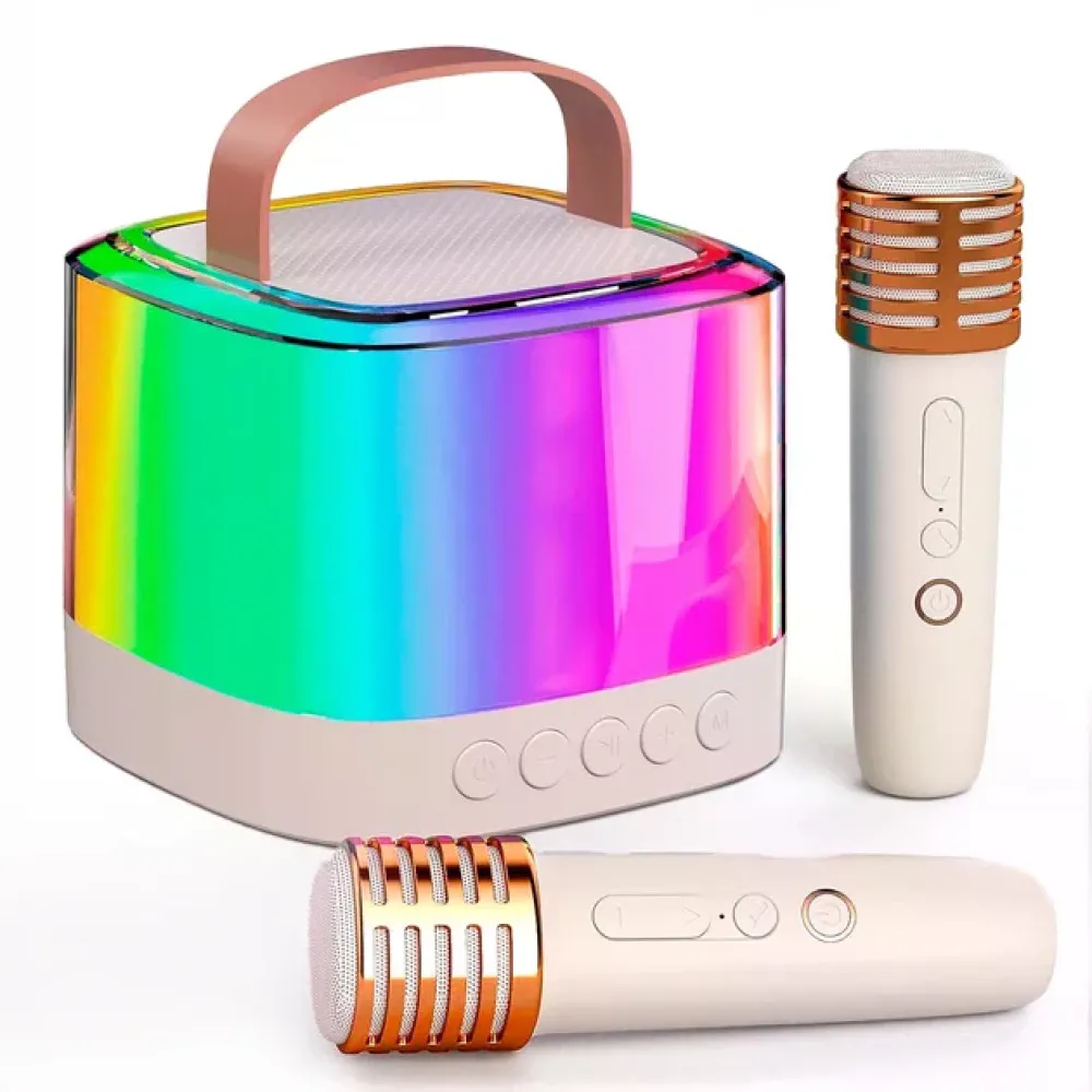 Мини колонка с двумя микрофонами — это удобная покупка для тех, кто хочет получить больше радости, общения и музыкального настроения в одном устройстве.