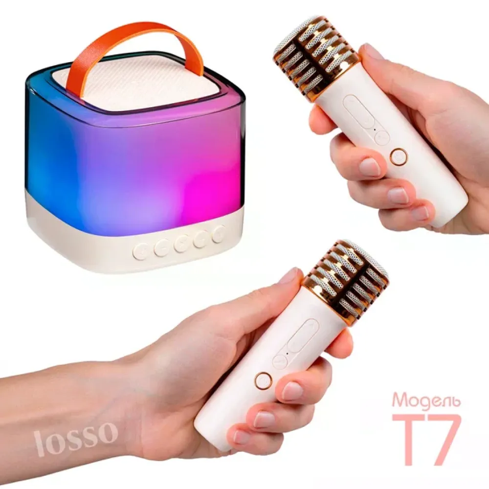 Заказывайте мини караоке колонку T7 с 2 беспроводными микрофонами прямо сейчас на нашем сайте!
