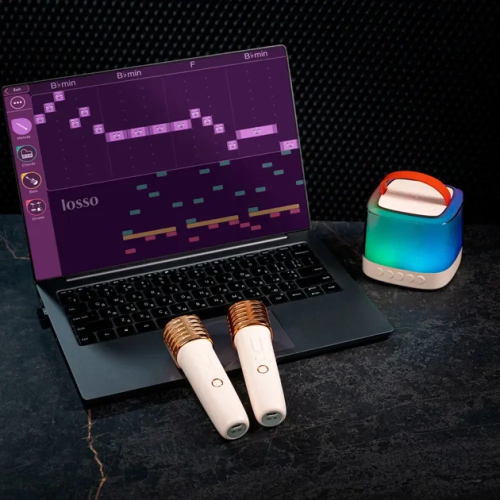 • Практичный вариант для тех, кто ищет яркую мини караоке колонку