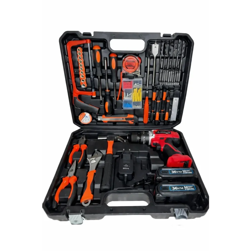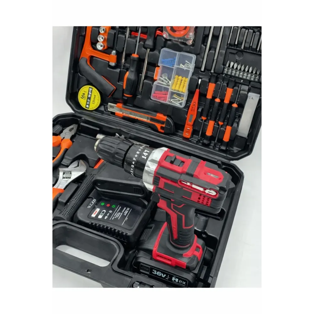 Многофункциональный набор инструментов с аккумуляторным шуруповертом RED MA800 • Шуруповерт аккумуляторный с набором ручных инструментов в кейсе для дома, ремонта, гаража и мастерской