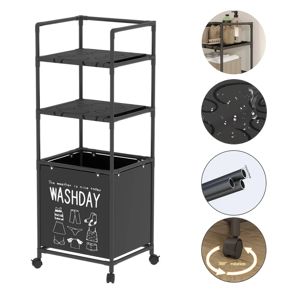 Корзина для белья в ванную с 2 полками 130х42х31 см черная • Напольный стеллаж-органайзер для белья и хранения вещей