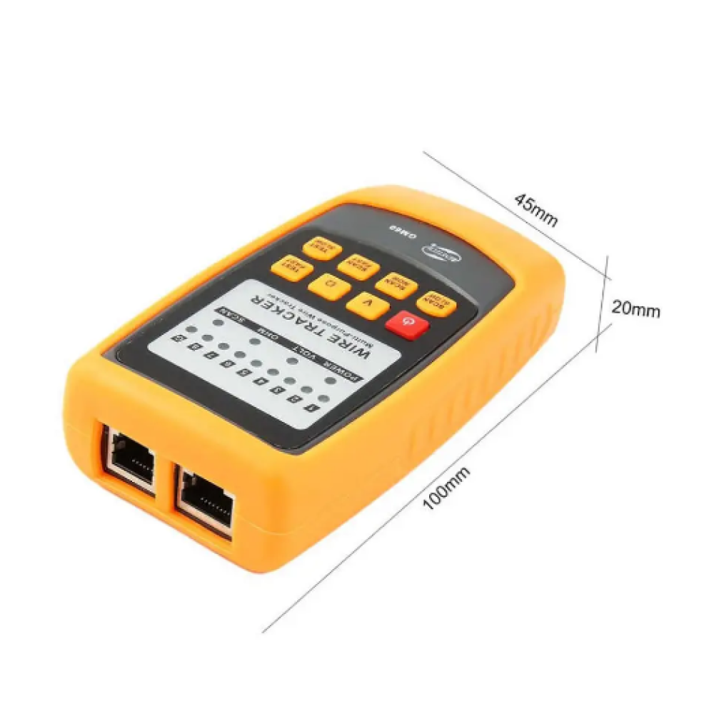 GM-60 Многофункциональный кабельный тестер предназначен для тестирования кабелей с разъёмами RJ-45 и RJ-11, а также отдельных проводников и проводниковых пар. Данный кабельный тестер состоит из двух инструментов тестирования: передатчика и тестера работающих в тандеме. GM60 способен проверять кабели на проводимость, наличие короткого замыкания проводников и открытой цепи, а также определять целосность кабельной структуры. Кабельный тестер Benetech GM60 имеет ручную настройку уровня громкости индикации, способен тестировать кабель длинной более одного киллометра. Особенностью данной модели является выбор нескольких режимов работы: тестирование, сканирование с выбором необходимой скорости операции. Питание приёмника кабельного тестера обеспечивает батарейка 9 В, распространённого типоразмера 6F22 "крона", а передатчик питается от 3-х батарей 1,5В.
