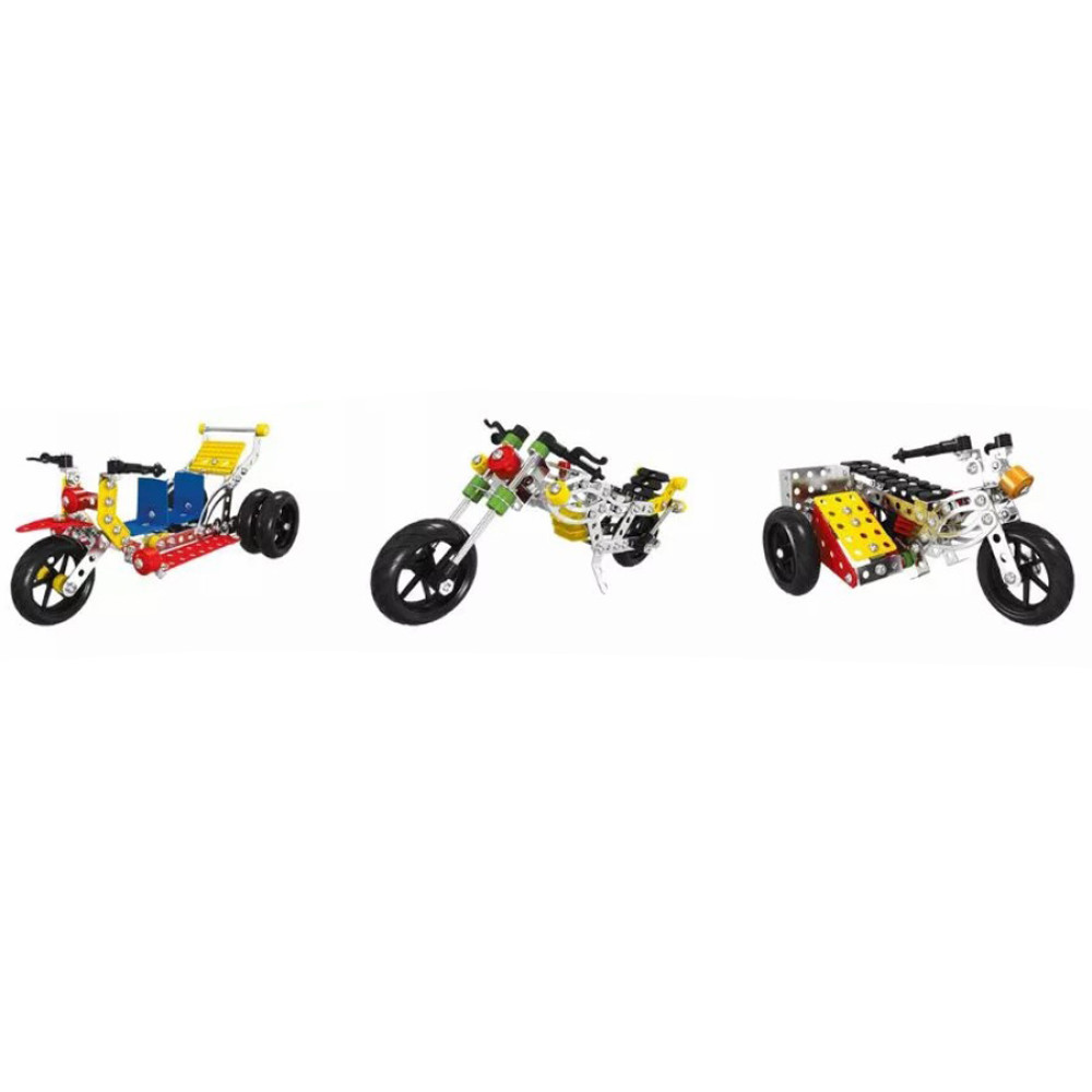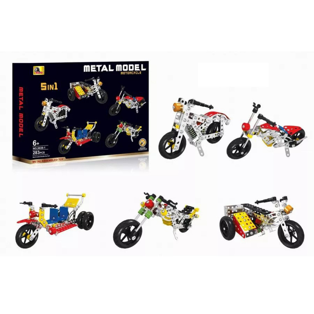 Металлический конструктор X638-1 — это уникальная возможность для каждого юного конструктора создать впечатляющий мотоцикл своими руками. В наборе 283 детали, которые позволят воплотить в жизнь 5 различных моделей мотоциклов, развивая воображение, моторику и технические навыки. Прочные металлические элементы обеспечивают долговечность и надежность каждой конструкции. Процесс сборки станет не только увлекательным, но и обучающим, позволяя погрузиться в мир инженерии и творчества.