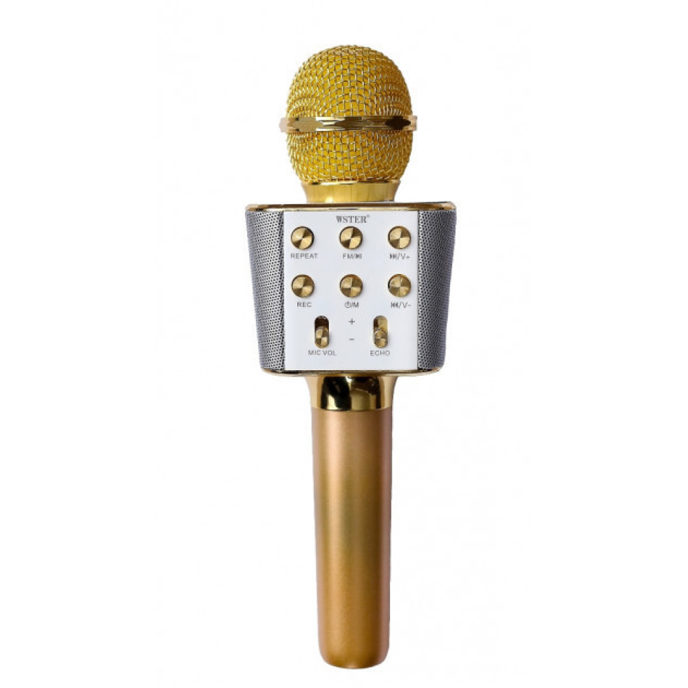 Оригинальный беспроводной караоке микрофон - колонка 2 в 1 Wster WS-1688 - это оригинальное устройство объединившее в себе вокальный Bluetooth микрофон и универсальную стерео колонку. Мобильный караоке-микрофон WSTER WS-1688 может стать отличным инструментом для начинающих вокалистов или средством скрасить приятный вечер в компании друзей. Портативный комбо микрофон можно использовать как MP3-плеер, переносную колонку или караоке-микрофон в комбинации со смартфоном или планшетом, и даже как мобильное зарядное устройство в экстренных ситуациях. Модель1688 оснащена беспроводным модулем Bluetooth, слотом USB и microUSB для чтения музыкальных файлов. Внешне микрофон WS-1688 напоминает популярную модель WS-858, но отличается другой формой и большими размерами аудио модуля, обладая теми же характеристиками, функционалом и отличным качеством звучания.