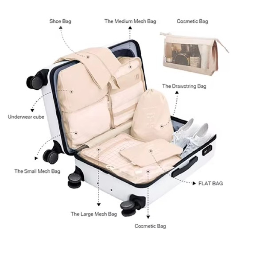 Путешествуйте с комфортом и порядком с этим универсальным комплектом органайзеров! Включает несколько удобных моделей для одежды, личных вещей и косметики. Каждый органайзер снабжен молнией, удобными ремешками для фиксации вещей и сетчатой крышкой для лучшей вентиляции. Модели имеют компактные размеры и легко складываются, не занимая много места в багаже. Все органайзеры оборудованы ручками для удобного переноски, что делает их идеальными для путешествий и командировок. Простой способ организовать пространство в чемодане и всегда иметь под рукой все необходимое!