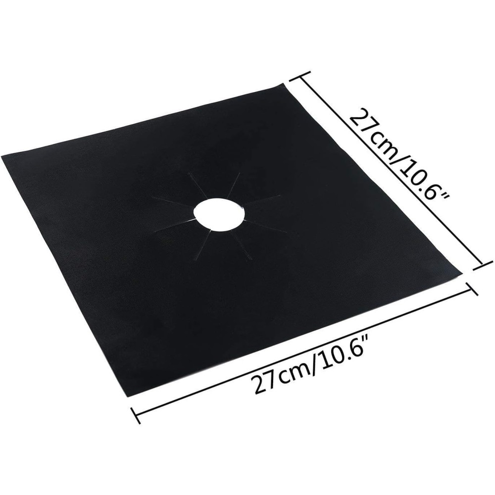 В набор входят 10 квадратных отрезков специализированной антипригарной ткани. В центре каждой накладки предусмотрено отверстие с радиальными расширительными прорезями, что позволяет легко адаптировать её под разные диаметры газовых конфорок. Материал устойчив к высоким температурам и воздействию бытовой химии, а гладкая поверхность облегчает уход