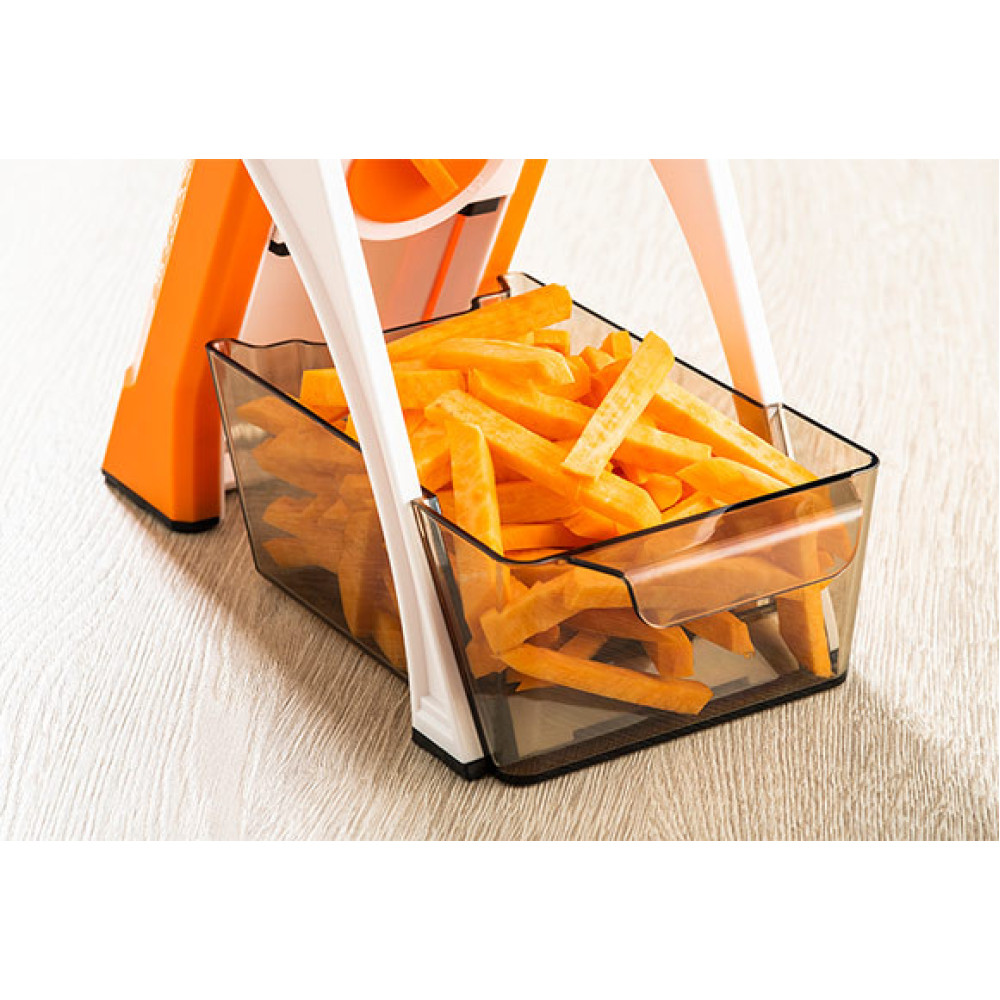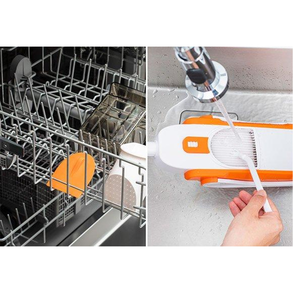 Слайсер также имеет абсолютно уникальный дизайн, и самое главное: он на 100% обезопасит вас от порезов. Благодаря 24 настройкам толщины нарезки в диапазоне от 0,2 до 8,0 мм и 2 различным стилям нарезания,