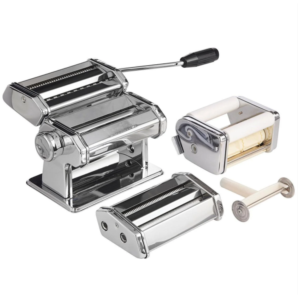 Лапшерезка ∙ Паста – машина ∙ Тестораскаточная машина ∙ Устройство для приготовления пасты, лапши + Тестораскатка Pasta Set QF-150 позволяет приготовить мучные вкусняшки итальянской кухни всего за несколько минут, не будучи при этом профессионалом. Достоинство устройства – возможность использования специальных насадок, которые позволят подготовить тесто для лапши, пасты и лазаньи. Классические виды настоящей итальянской пасты, не пачкая руки и большое количество посуды. Лапшерезка изготовлена из прочного, экологичного, безопасного для здоровья материала.
