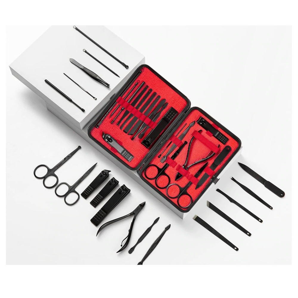 Маникюрный набор 18 предметов · Набор для маникюра и педикюра Manicure Suits состоит из 18 инструментов для ухода за лицом, руками и ногами, формирования бровей, борьбе с акне, отшелушивания и др. Набор идеально подходит для путешествий и домашнего использования!