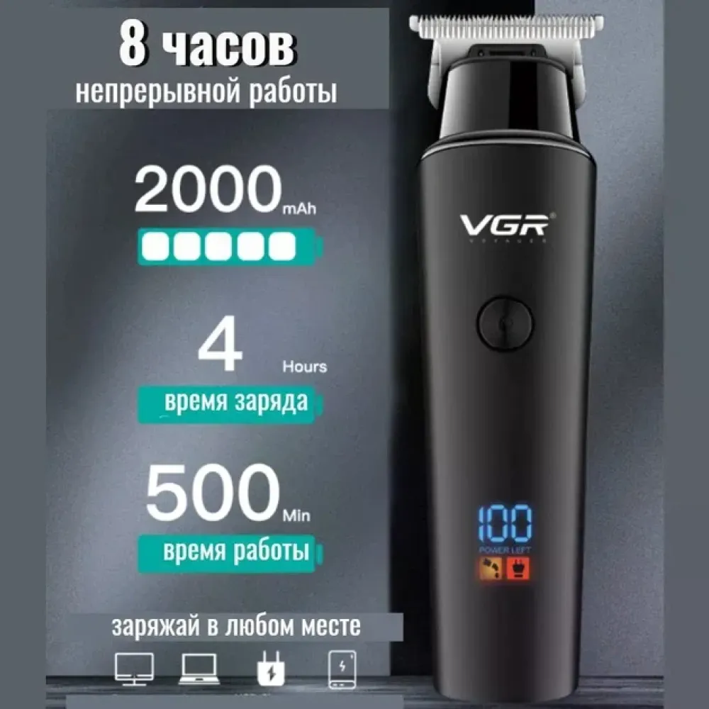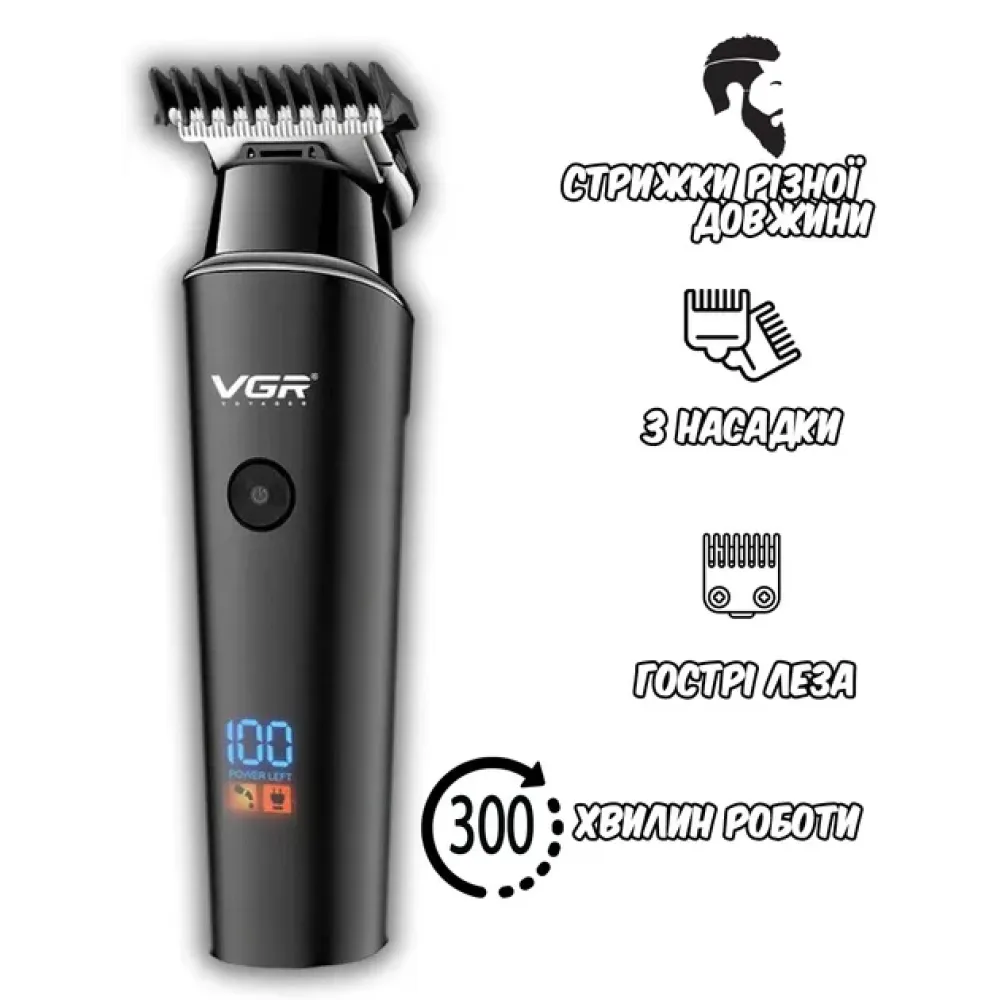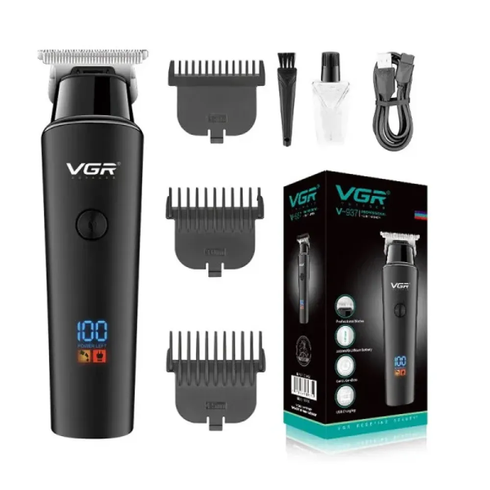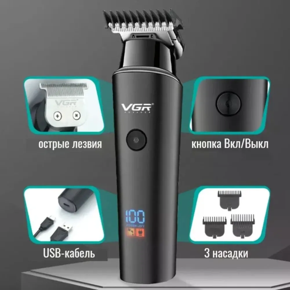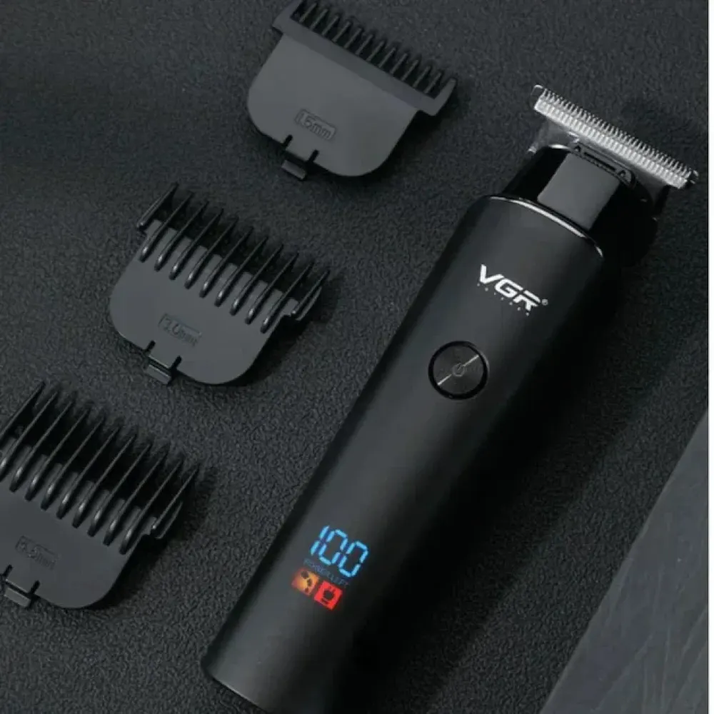 Машинка для стрижки VGR V-937 для волос и бороды • Аккумуляторный триммер для окантовки с T-образным ножом, LED-дисплеем и USB Type-C