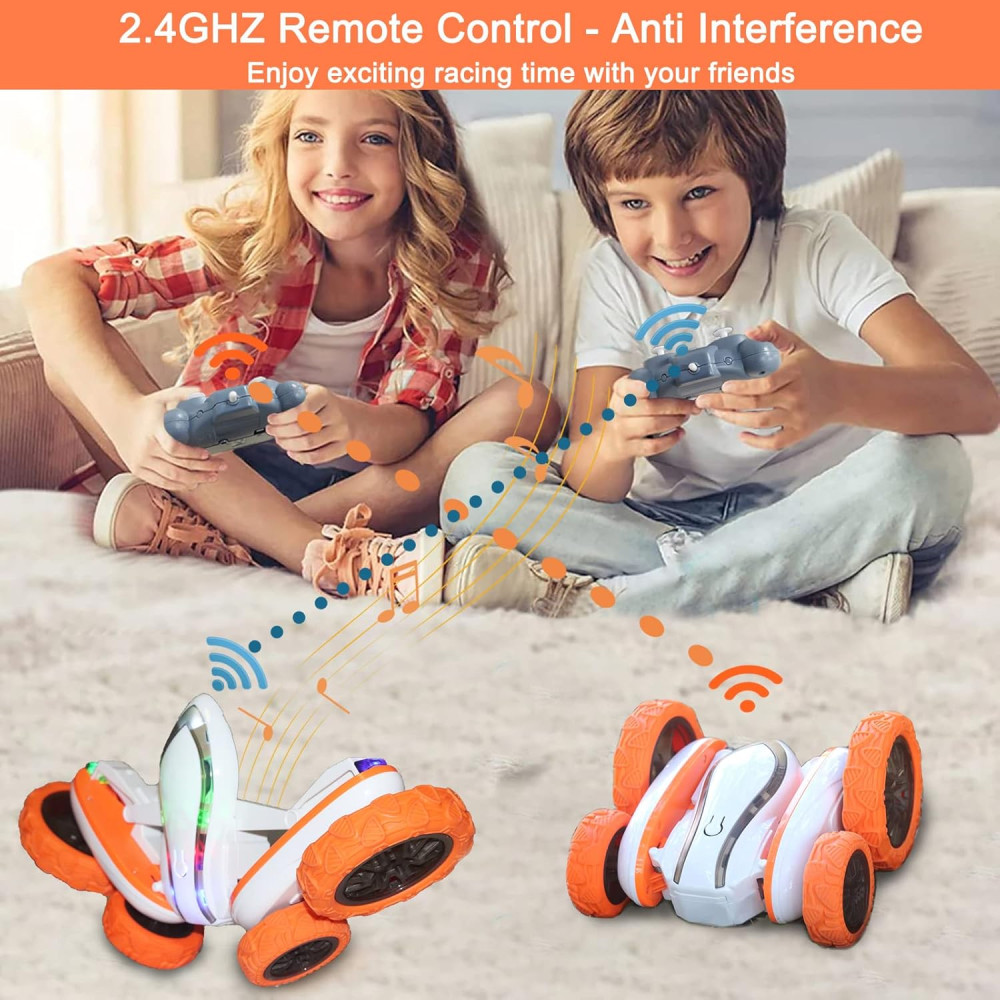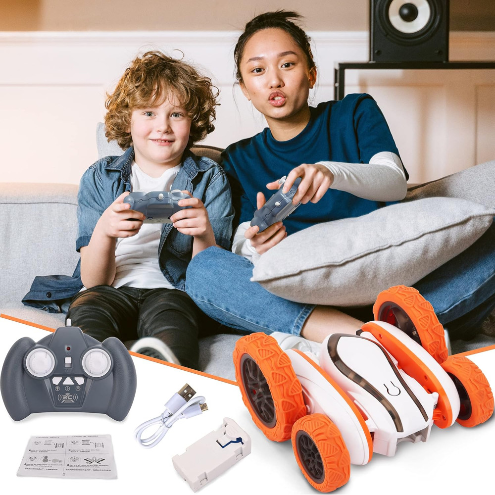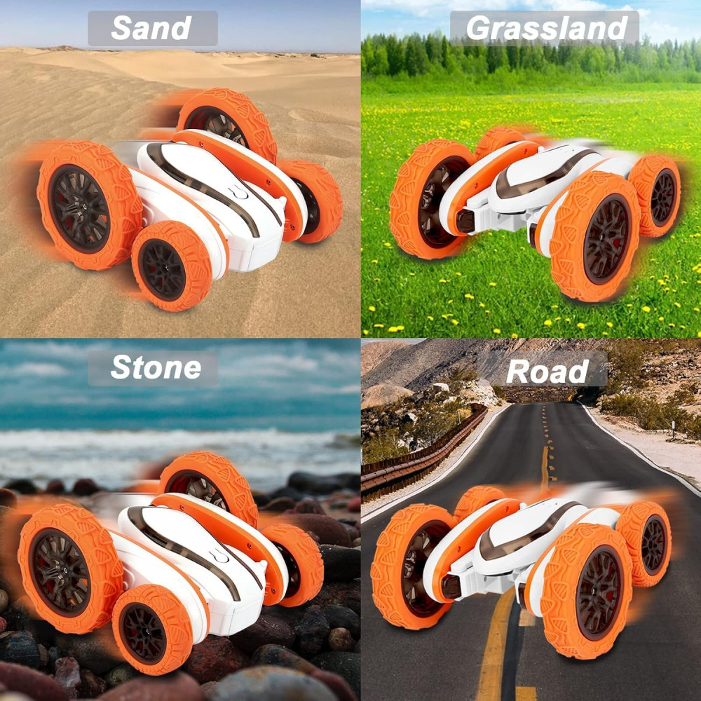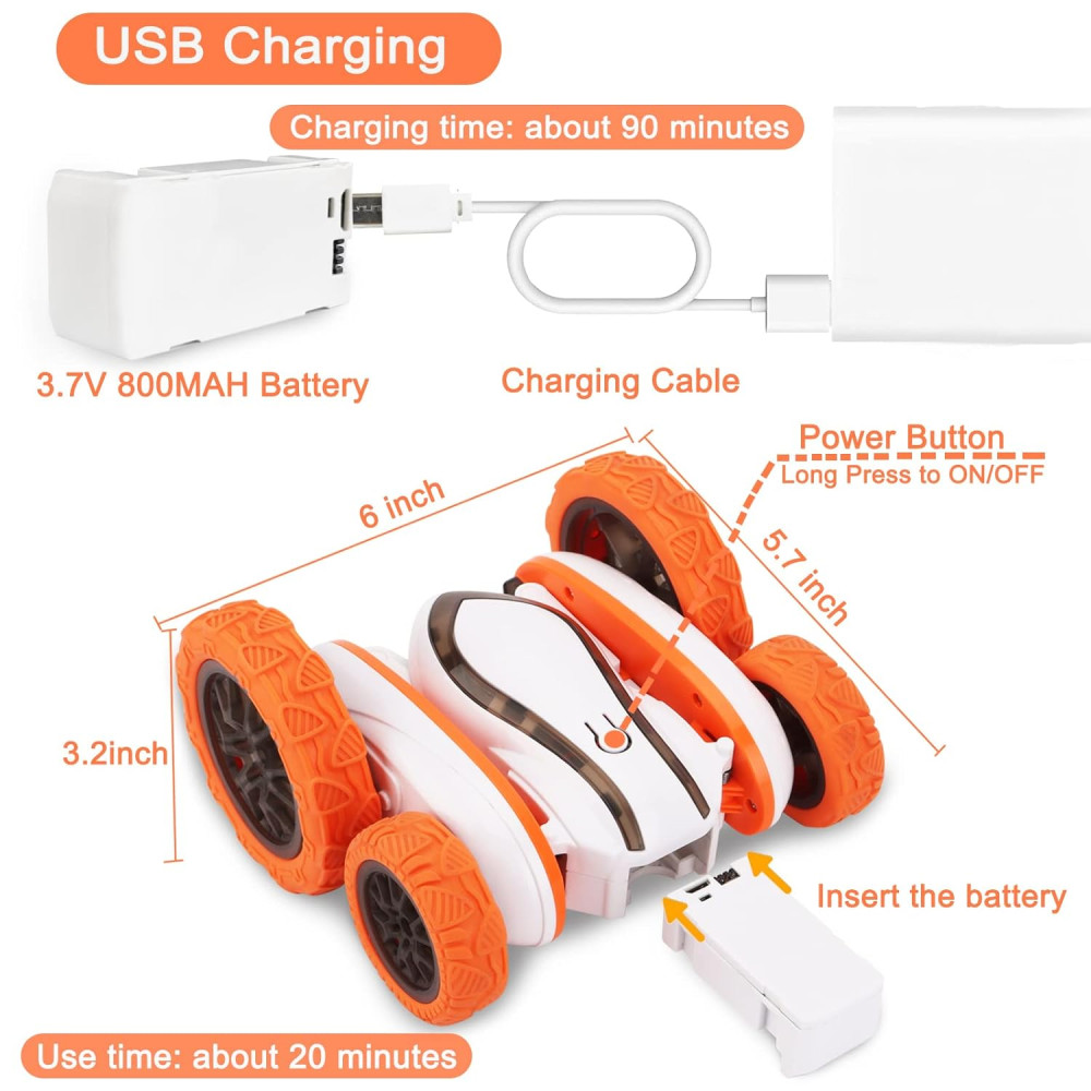 Надувные мягкие колеса позволяют свободно ездить даже по газону во дворе. Отличная сборка и качественные материалы делают машинку прочной: она может врезаться в препятствия, отскакивать от них и переворачиваться без повреждений. Машинка-перевертыш на радиоуправлении — идеальный подарок для вашего ребёнка