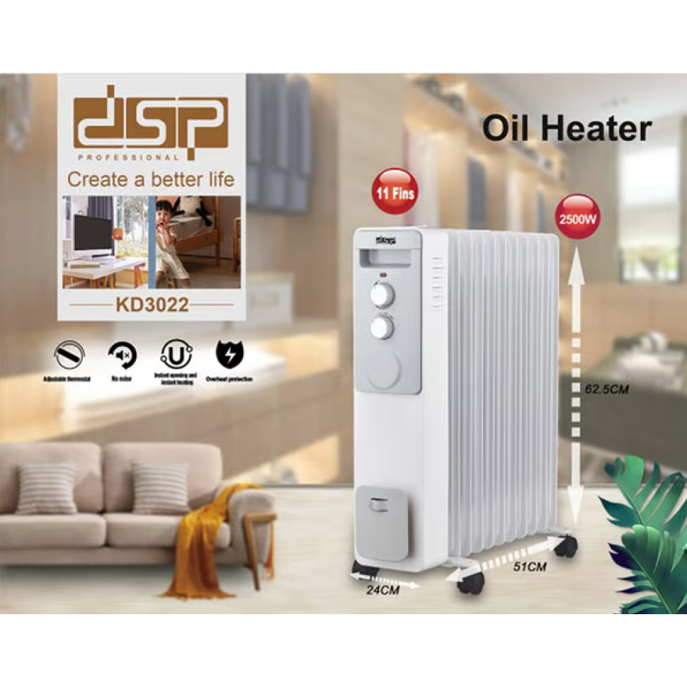 Масляный радиаторный обогреватель DSP KD3022 ∙ Портативная передвижная батарея для дома, 2500 Вт