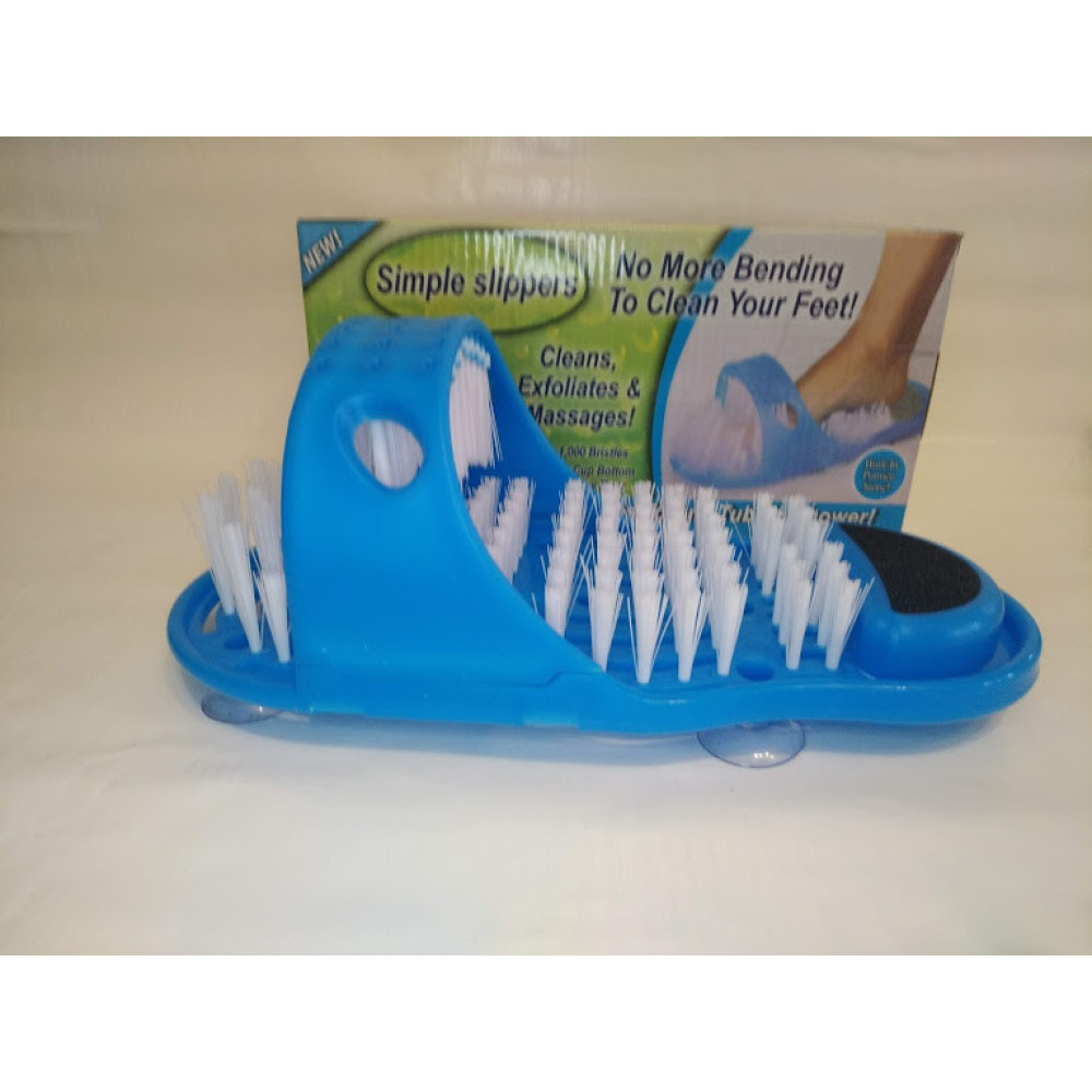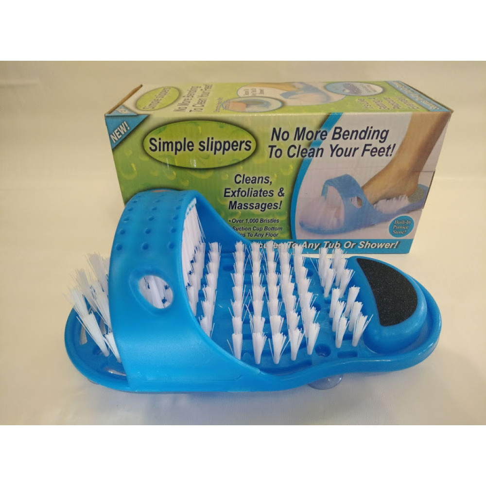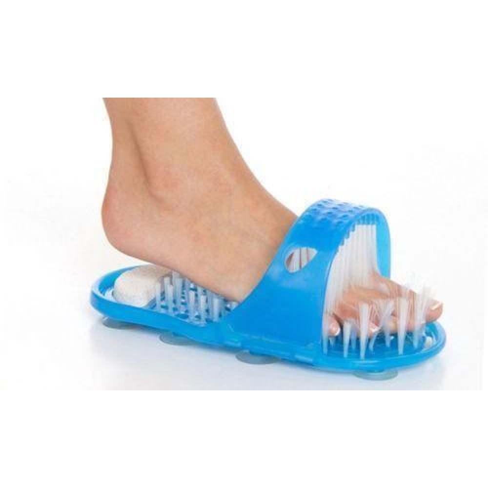 Easy Feet щетка массажер для ног выполнена в форме удобного тапочка голубого цвета, с тысячью щетинок с разным размером и жесткостью. С его помощью пальцы, стопы эффективно массируются, а также очищаются, плюс изделие оснащено специально пемзой для мягкого пилинга. Чудо-тапочек без проблем можно зафиксировать на плитке, в ванной благодаря присоскам на подошве. Размер щетки универсальный, подойдет абсолютно всем.