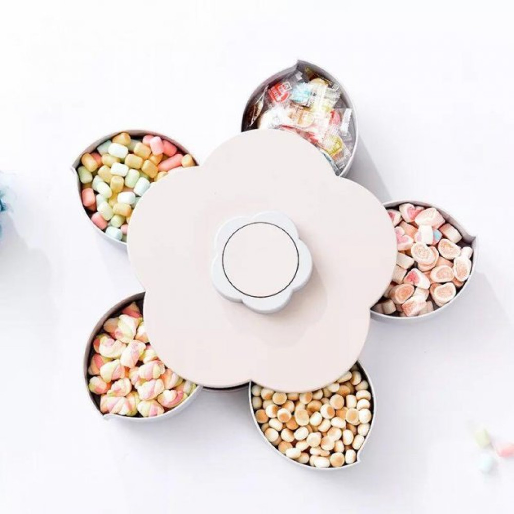 5 отделений, которые располагаются на удобной вращающейся платформе – просто раскройте лепестки и каждый сможет выбрать для себя самое вкусное лакомство.