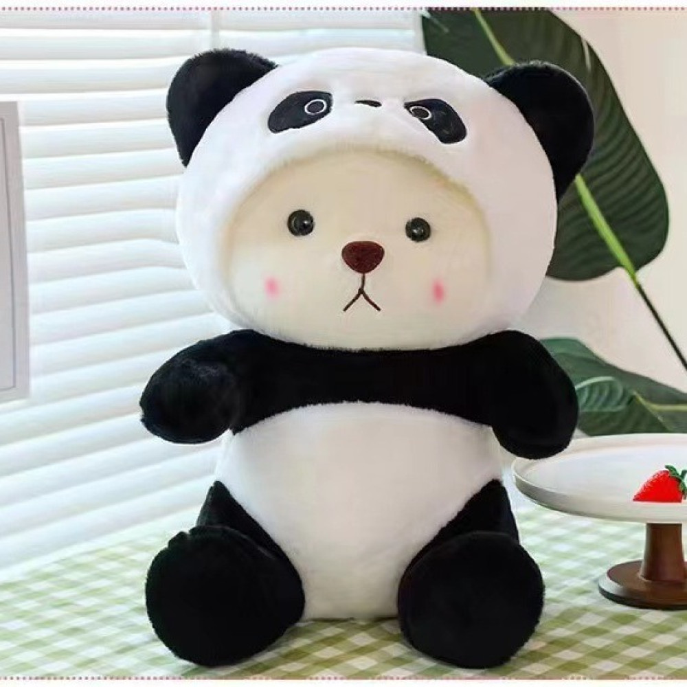 Мягкая игрушка Медвежонок Панда в костюме с съемным капюшоном · Плюшевый мишка, 40 см