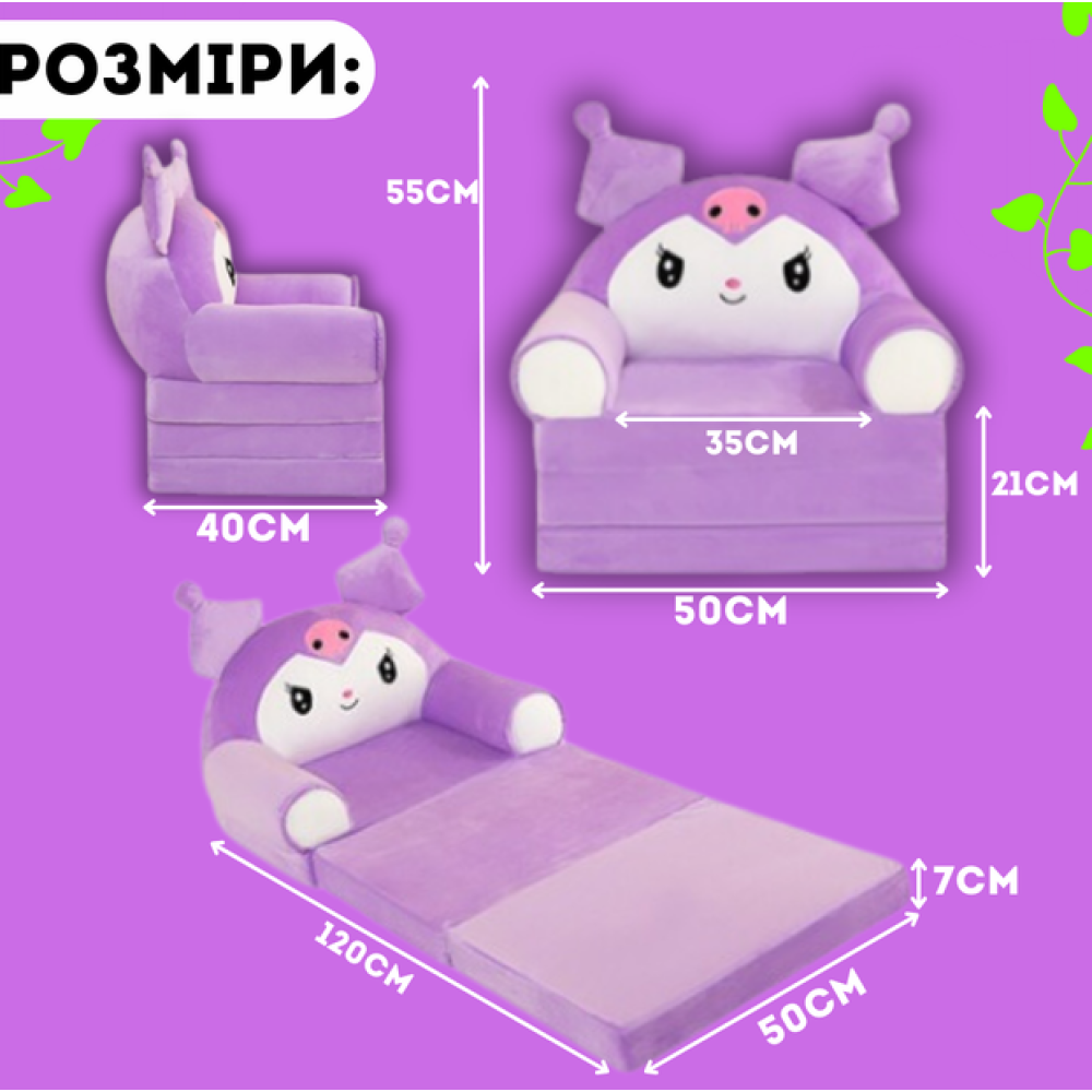 Детское раскладное кресло Kuromi 3 в 1: диван, кровать и подушка в одном