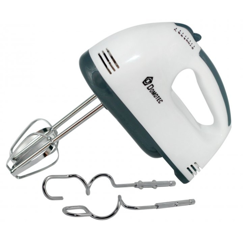 Получить смеси разной консистенции Вы сможете благодаря 7 скоростным режимам. Воздушное или более густое тесто Вам помогут замесить две насадки для теста. Миксер Domotec MS-1333 – прибор очень удобный и легкий в использовании и очистке. Один из самых лучших домашних миксеров, который будет помогать готовить Ваши любимые блюда. Данный миксер обладает отличной плавностью оборотов и большим выбором скоростей вращения насадок. Корпус миксера изготовлен из пластика, а насадки из нержавеющей стали, а продуманная до мелочей эргономика придает дополнительный комфорт в использовании данного миксера. Domotec оптимальное соотношение функциональности и цены.