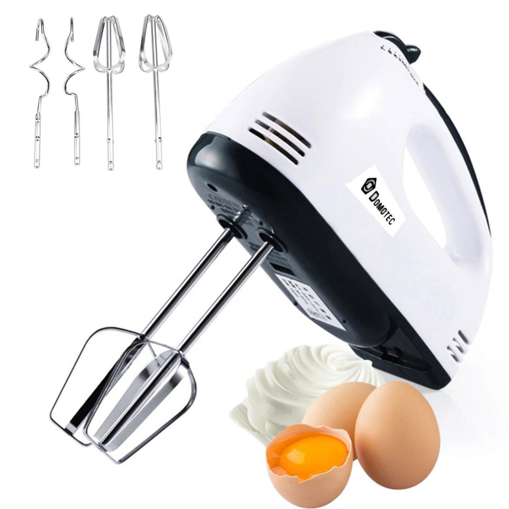 Ручной миксер Domotec MS-1333 относится к типу довольно компактных, но очень мощных моделей с мотором, максимальной мощностью 200 Вт. Данный прибор оборудован 7 скоростными режимами работы, позволяющими эффективно взбивать продукты различной плотности. В комплекте с миксером Вы найдете дополнительные крюки для замешивания теста, что по достоинству смогут оценить те хозяйки, которые любят радовать свою семью различными выпечками. А два венчика для взбивания позволят быстро и качественно взбить нужный Вам продукт. С помощью ручного миксера Domotec MS-1333 Вы с легкостью порадуете всю семью вкусным воздушным десертом.