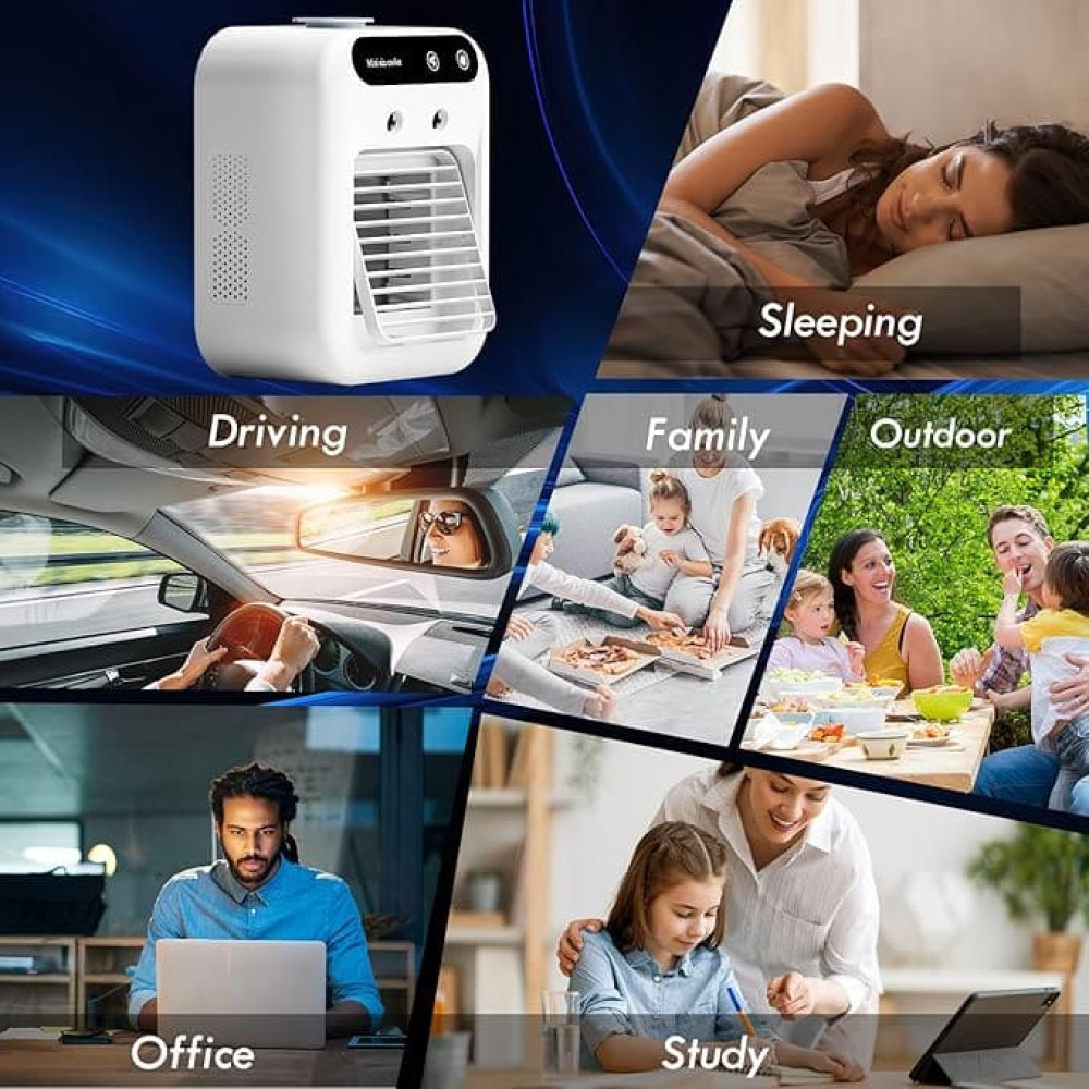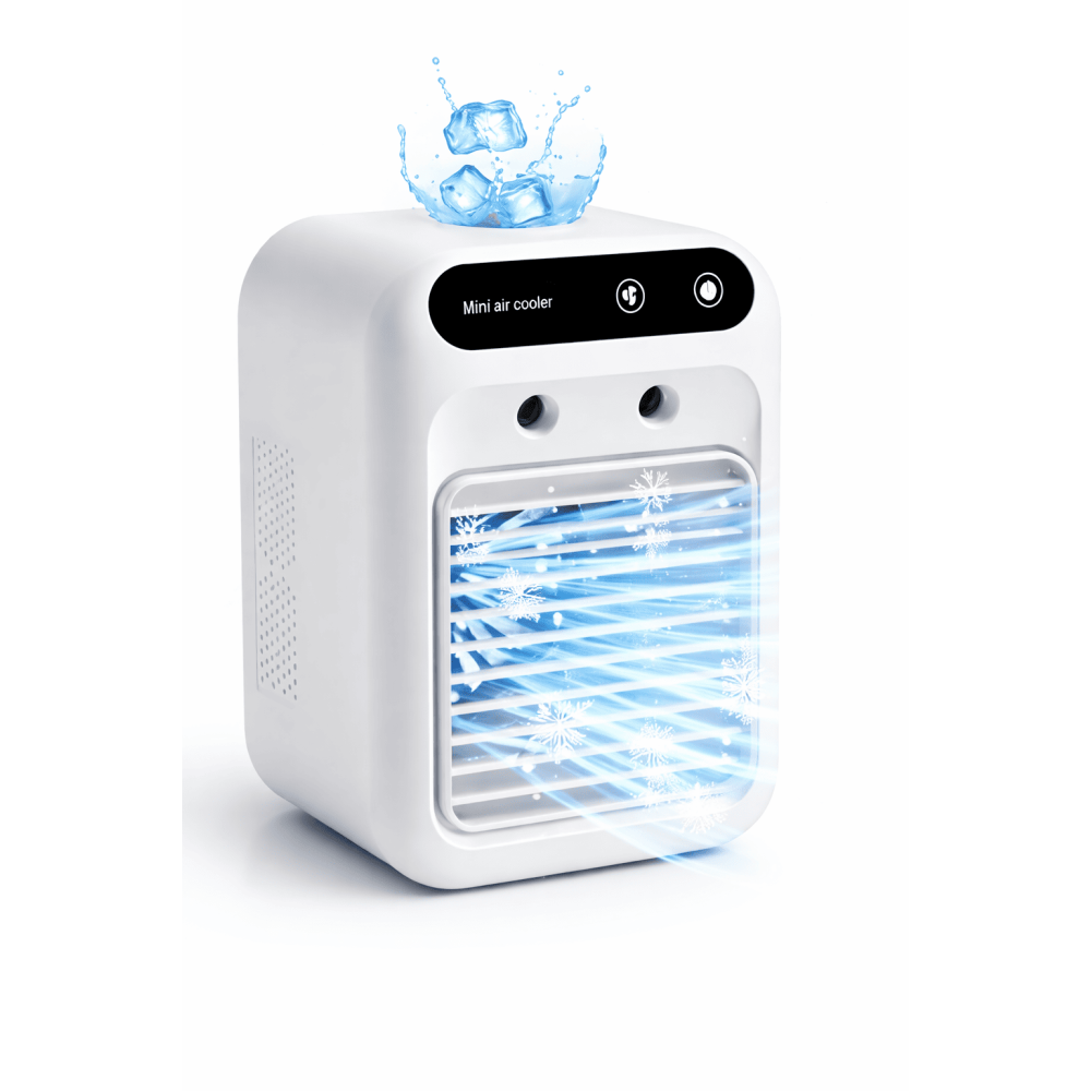 Мини кондиционер вентилятор с увлажнителем воздуха Модель 1 — это удобное решение для тех, кто хочет создать более комфортную атмосферу рядом с собой в жаркое время года. Такой компактный прибор помогает освежать воздух, делает рабочую или домашнюю зону приятнее и подходит для повседневного использования дома, в офисе, на кухне или возле кровати. Благодаря настольному формату устройство не занимает много места и легко вписывается в современное пространство.
